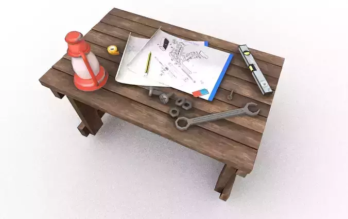 Low Poly Upgrade Table Crafting Workbench Game Ready Station Low-poly 3D model