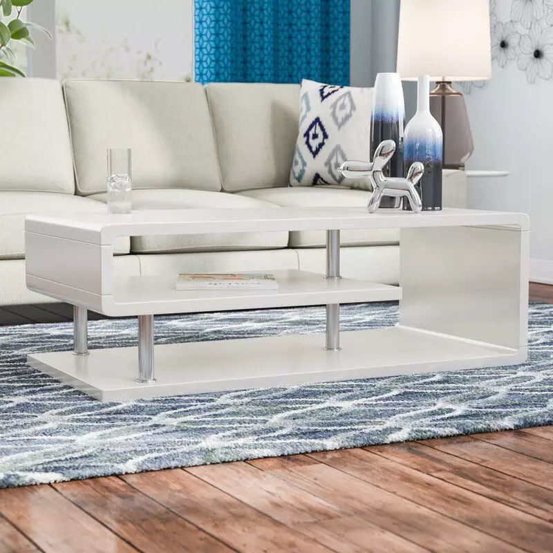 • Featuring a bold, open design, this eye-catching table is the perfect anchor for any ensemble. Set it over a plush shag rug to up its midcentury modern appeal, and then use its 3 tiers to display stacked art books, faux fruit, and more.