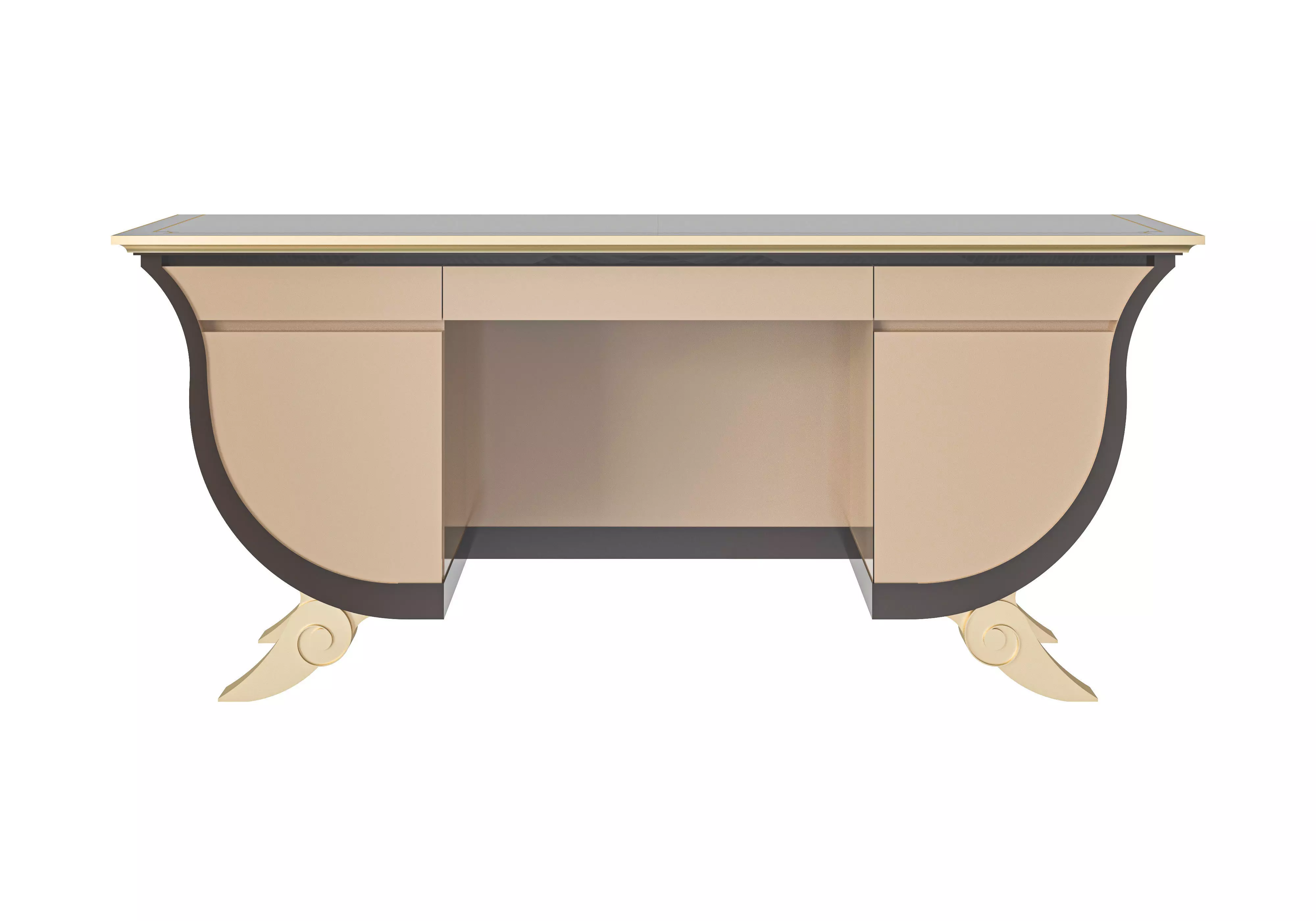 Classic Design: The dressing table features a graceful, curved structure that embodies classic luxury and style.High-Quality Materials: Made from premium wood with a soft beige finish, enhanced by elegant dark accents and gold details.Functional Storage: The table includes multiple drawers, providing ample space to store all your beauty essentials and keep your area organized.Intricate Details: The beautifully designed legs and trim showcase the meticulous craftsmanship and attention to detail synonymous with Modenese furniture.