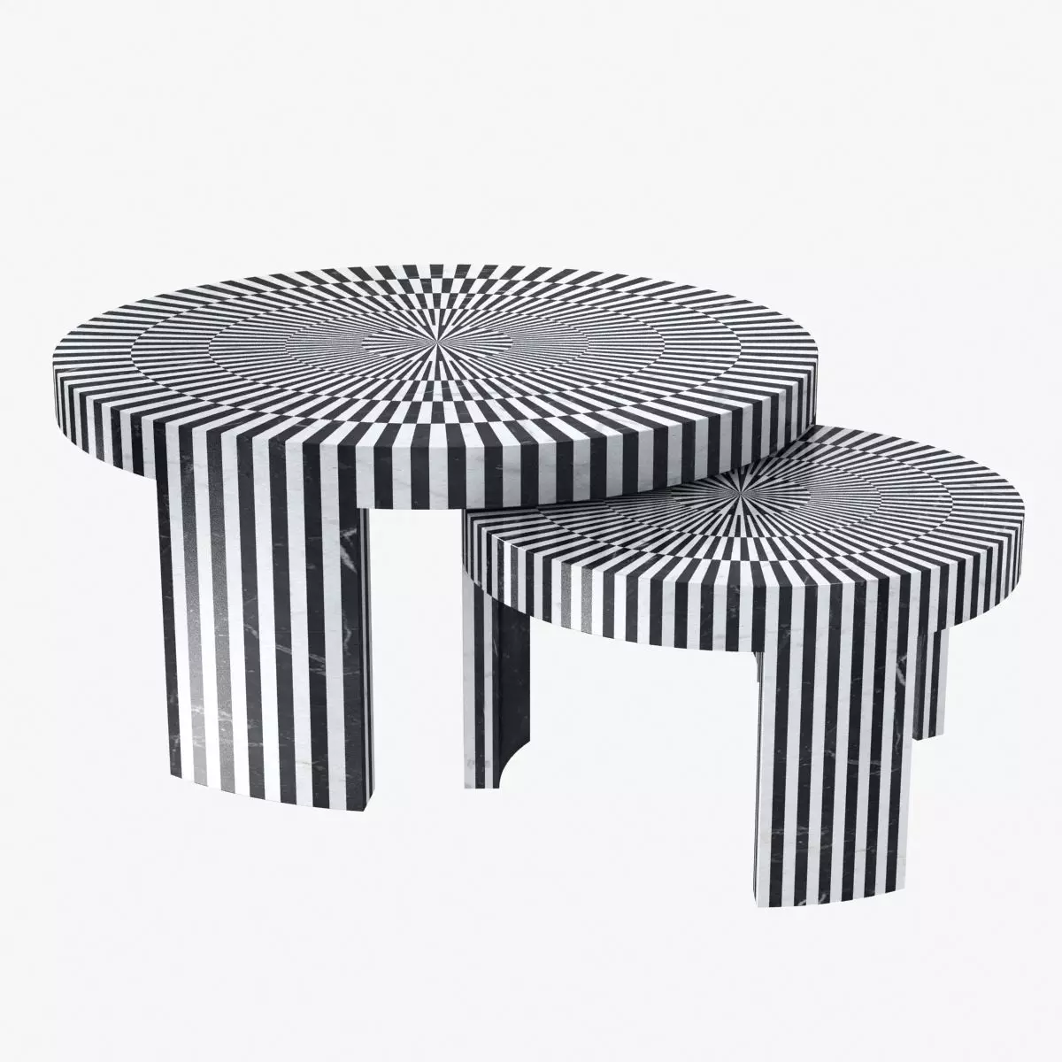 CARLOTTAMade of stone, this set of dramatic nestingcoffee tables is a statement that demandsattention. Exquisite craftsmanship pairedwith durable materials form a bold, circularpattern, atop three wide legs.MATERIALMarbleDIMENSIONSA. 14”Dia x 18”H25”Dia x 20”HB. 26”Dia x 15”H40”Dia x 18”H
