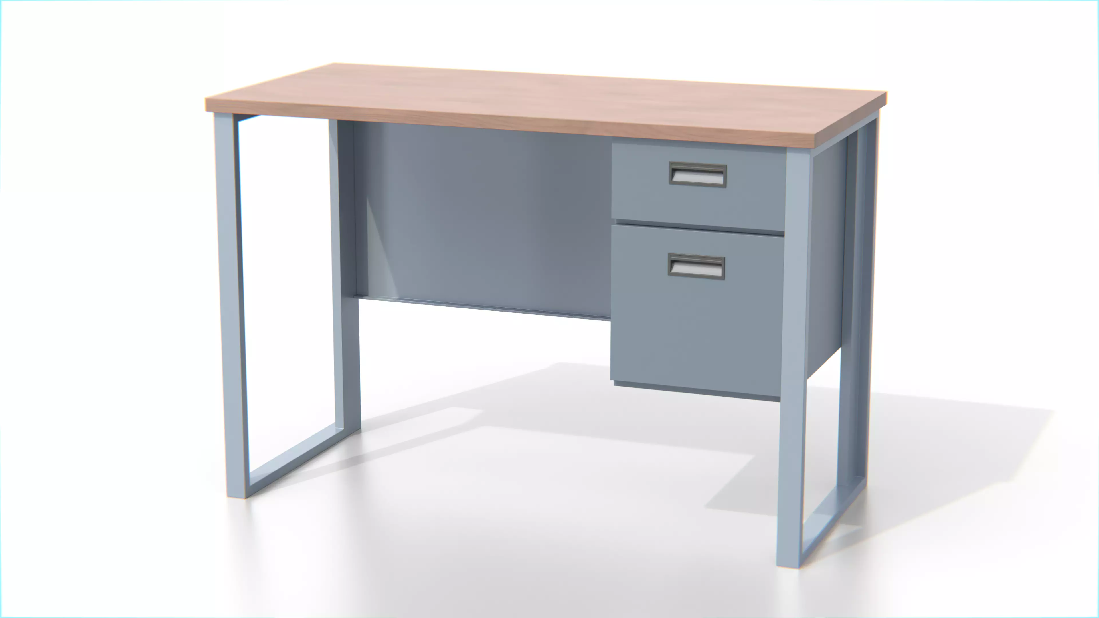 Its simple geometric design makes it versatile for both modern and utilitarian environments such as home offices, classrooms, workshops, or administrative workspaces. The combination of metal durability and warm wood texture adds both functionality and visual balance to any 3D interior scene.