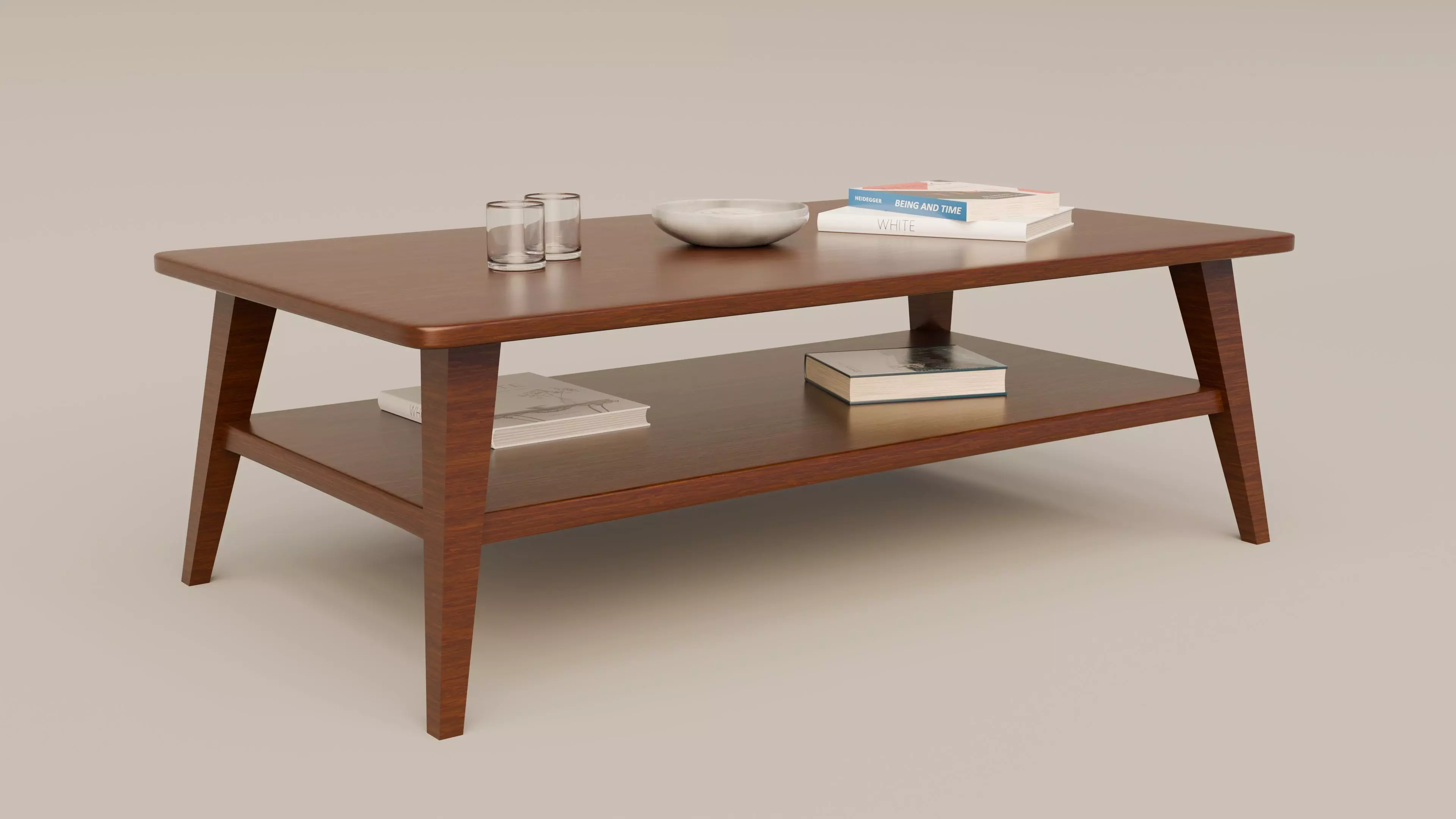 A 3D model of Mid Century Modern Coffee Table with Some Decorative Accessories