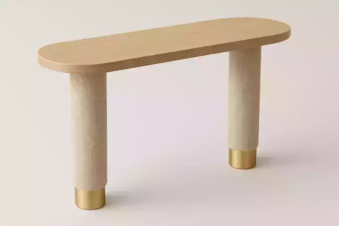 A unique luxury console table designed with a bold mix of beage velvet, oak wood, and gold steel.This model is fully detailed and ready for high-end interior visualization projects.The design features clean modern lines, sculptural volumes, and artistic material combinations — perfect for luxury residential, hotel, boutique, or retail interiors.