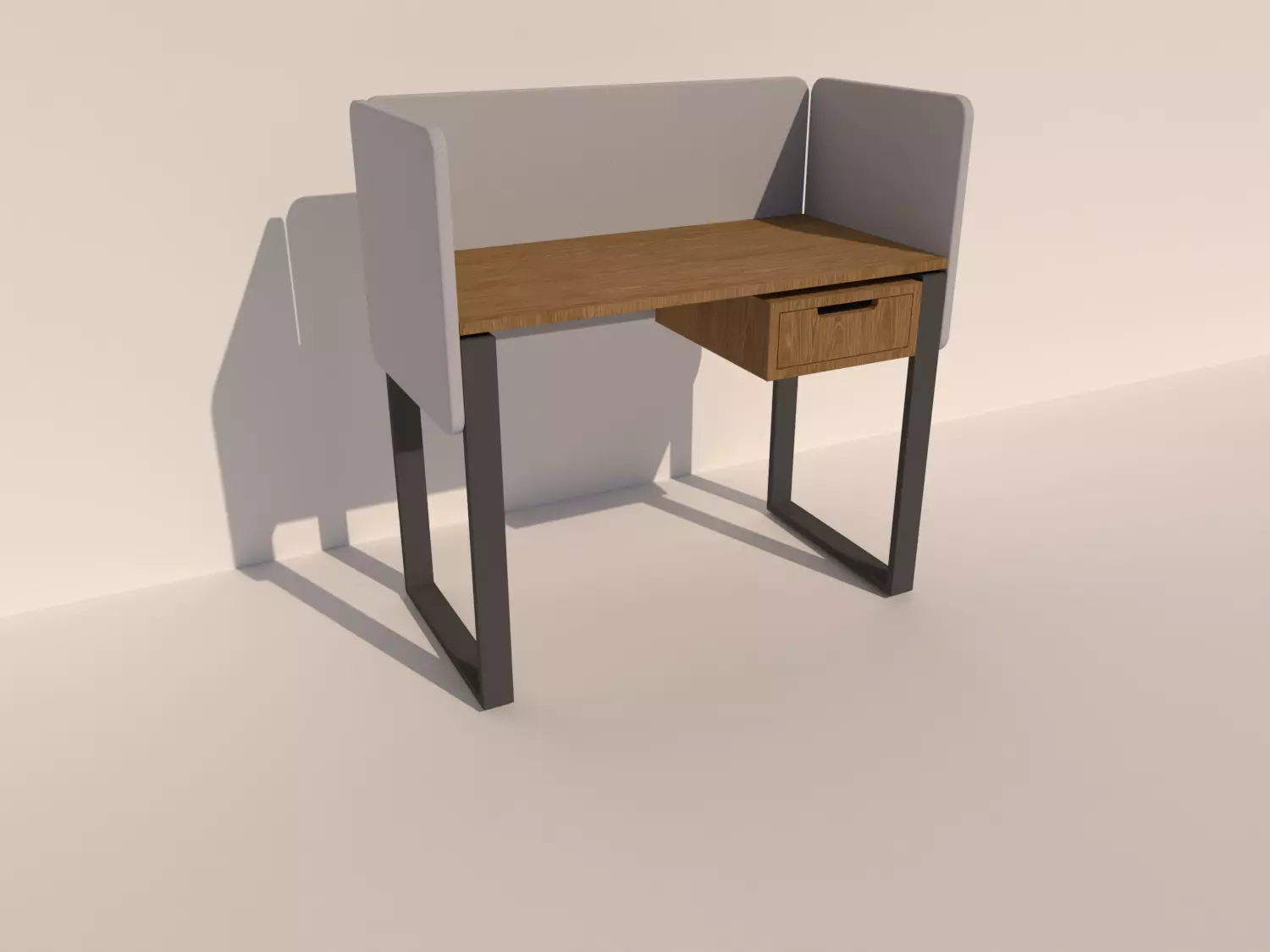 High quality 3D model of a modern office desk with drawer and soft divider panels 1000x500x750.