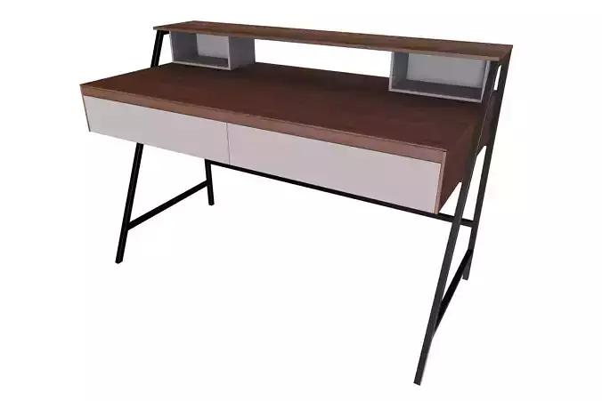 This is a sleek and functional PBR (Physically Based Rendering) 3D model of a modern writing desk featuring an integrated storage hutch. The design combines contemporary aesthetics with practical workspace solutions, making it ideal for home offices, student rooms, or modern living spaces.