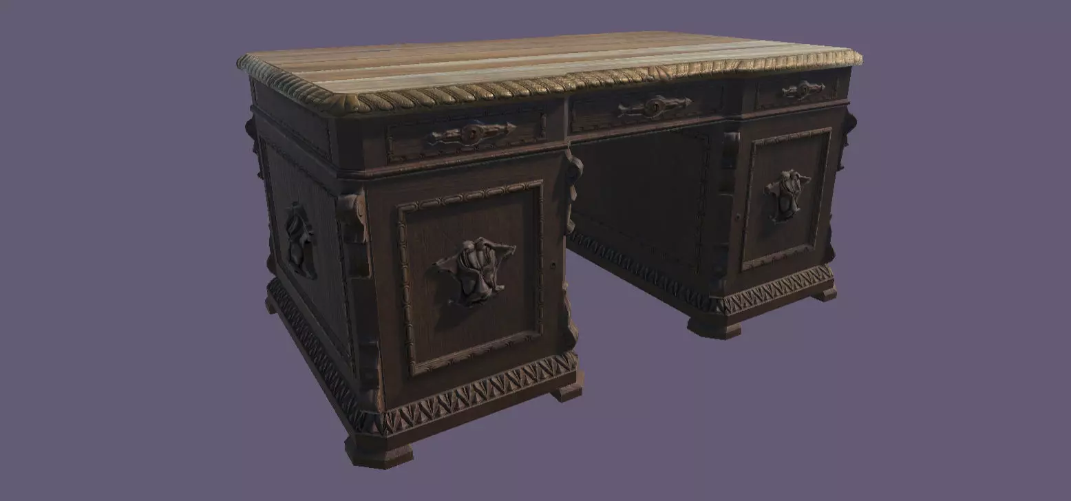 Low-poly 3d model of medieval Table. On preview is a render of Unity3D engine’s viewport. The package contain unity-material.