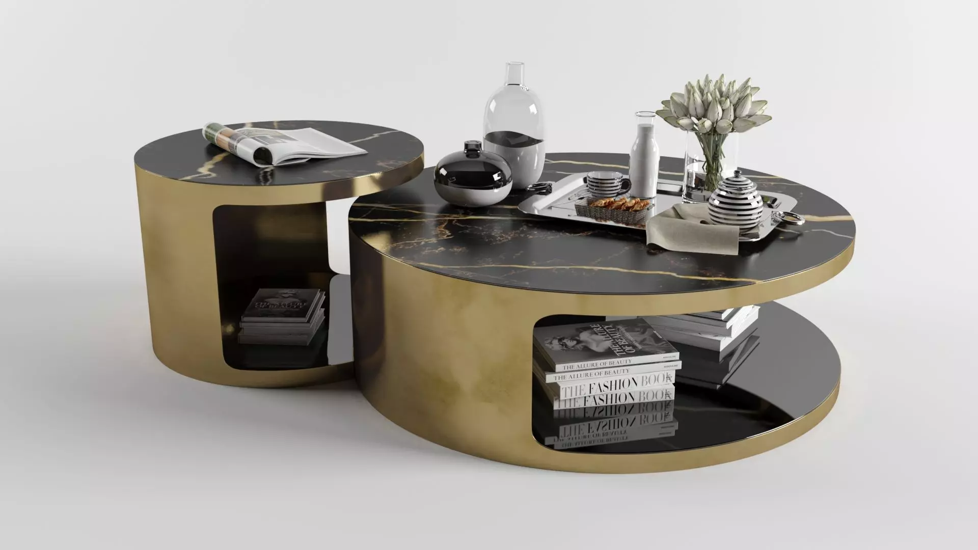 A luxurious coffee table set comes with Omini Round Table and End Table.
