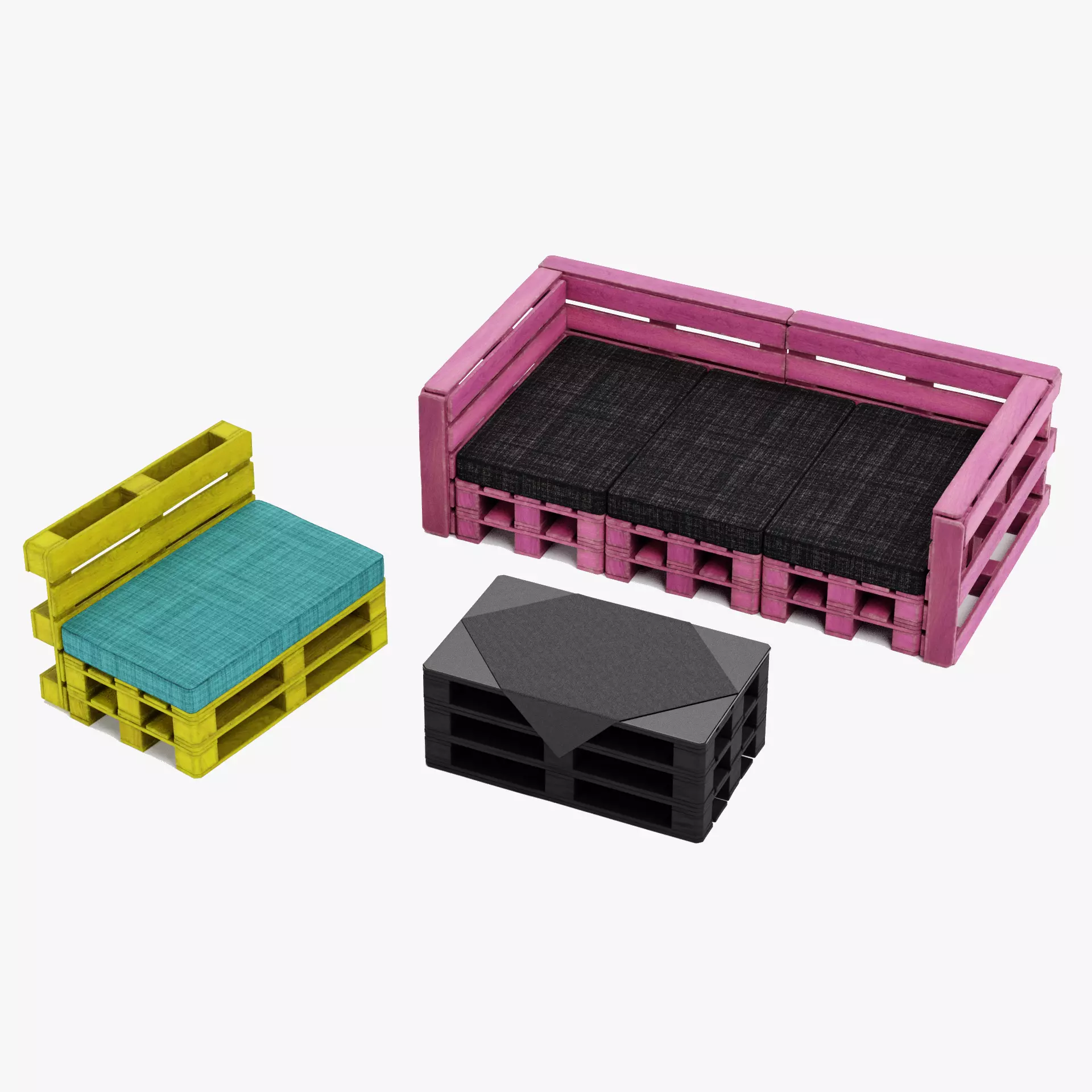 Pallet Furniture - Colorful Lounge Seating Set 3D model
