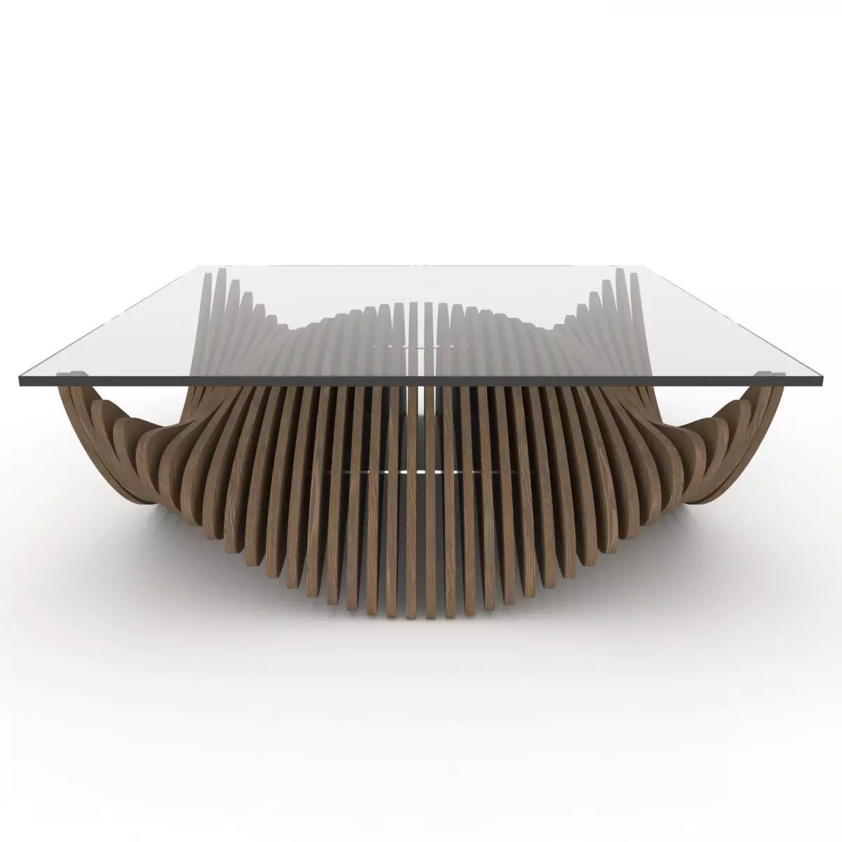 Parametric coffee table in 150*150*52 cm dimensions.You can use it in your interior works and cnc cutting machines.It is made of 2 cm thick wooden planks.There is a 2 cm gap between each plate.The plates will be joined with 3 pieces of 1 cm diameter iron rods.The parts were ordered side by side and uploaded in .max, .stl and .dwg formats. You can produce the table by printing 2 pieces from the file.The spaces where the bars will come are cut on the model in these files.