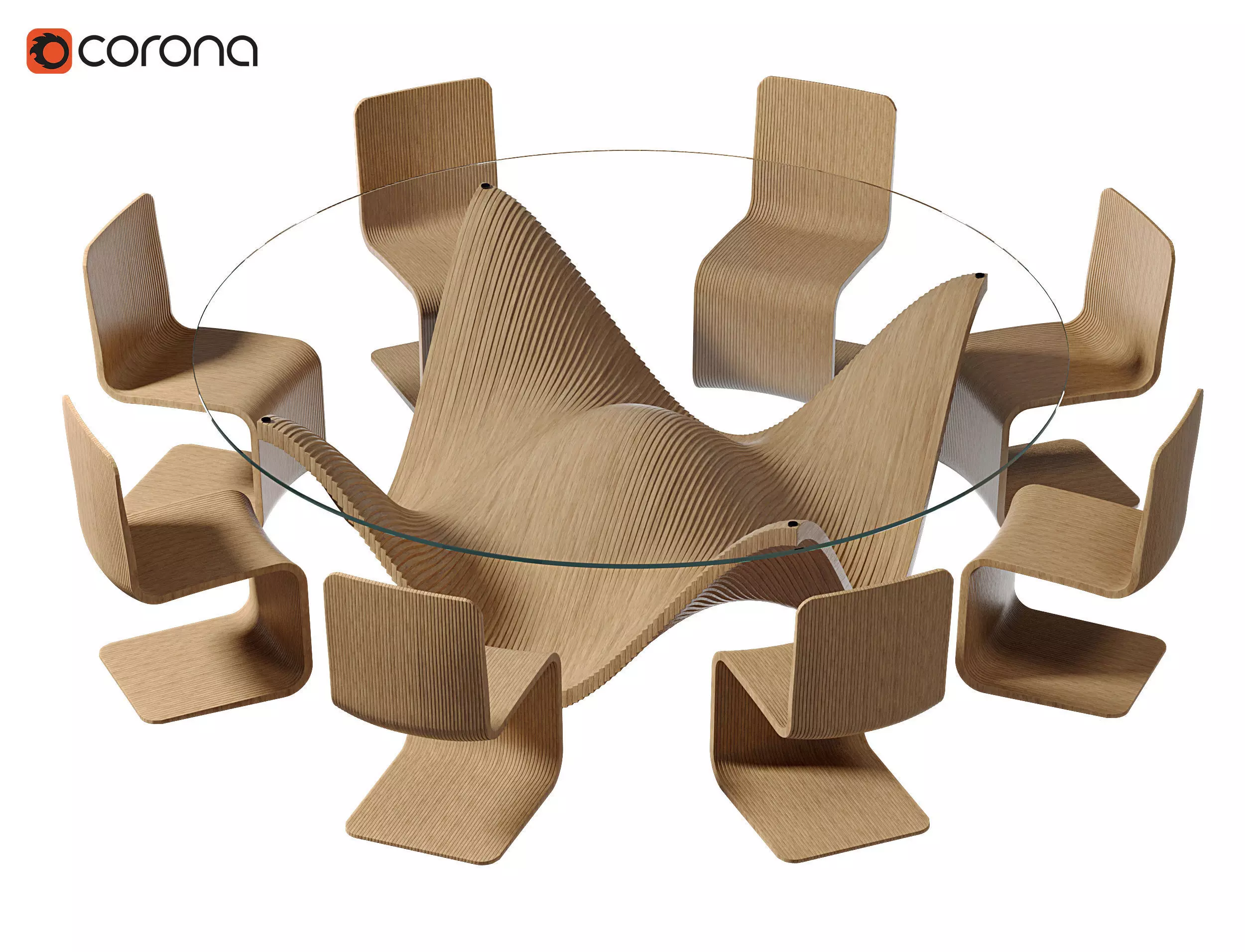The model has material settings that define how surfaces look (color, shine, transparency, etc.).