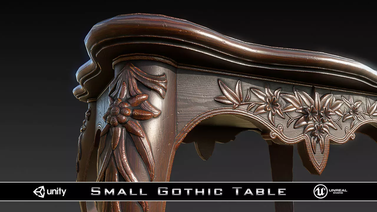 Old fashioned, antique, gothic stylized small table with PBR Textures.