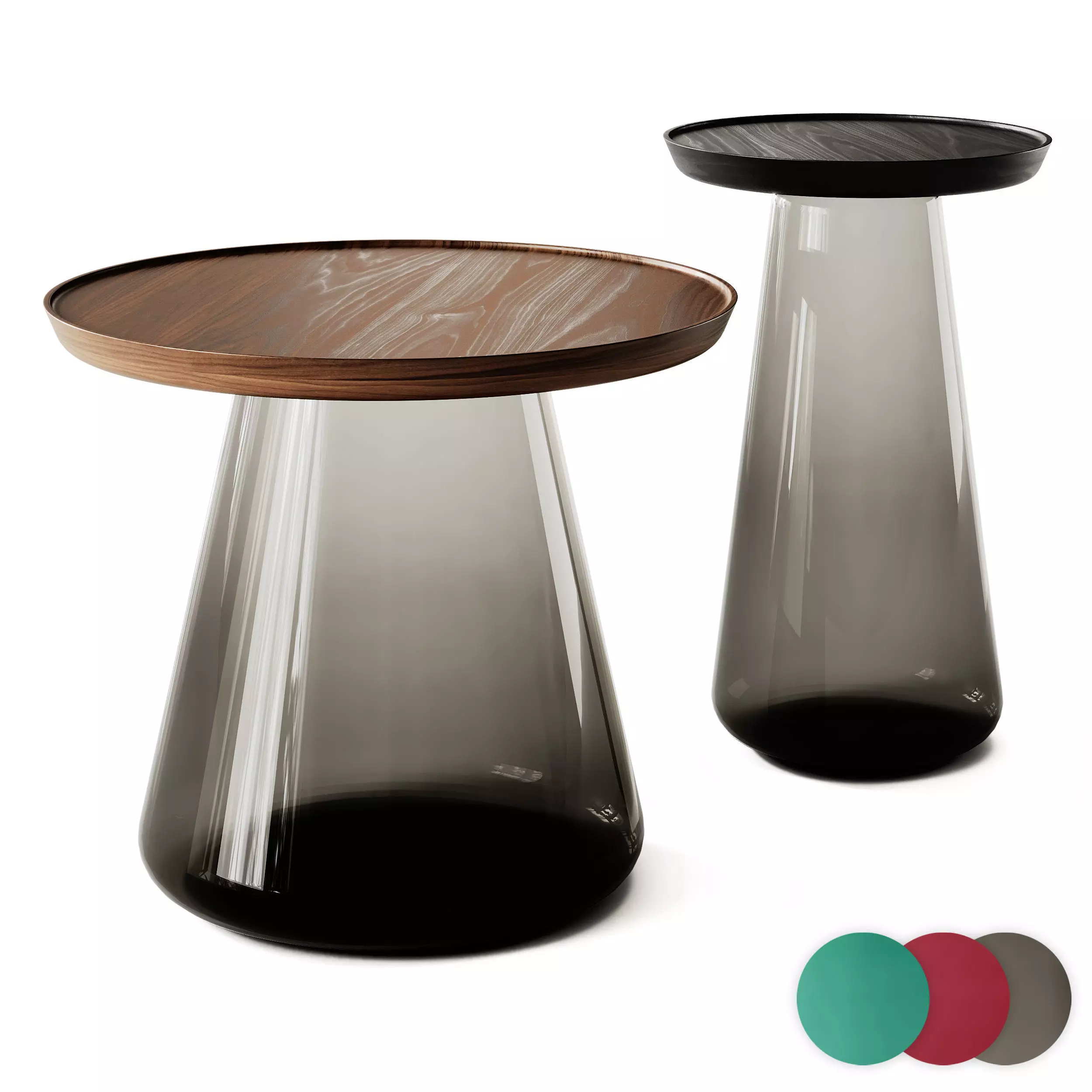Jig Round blown glass and walnut wood side table by Porada