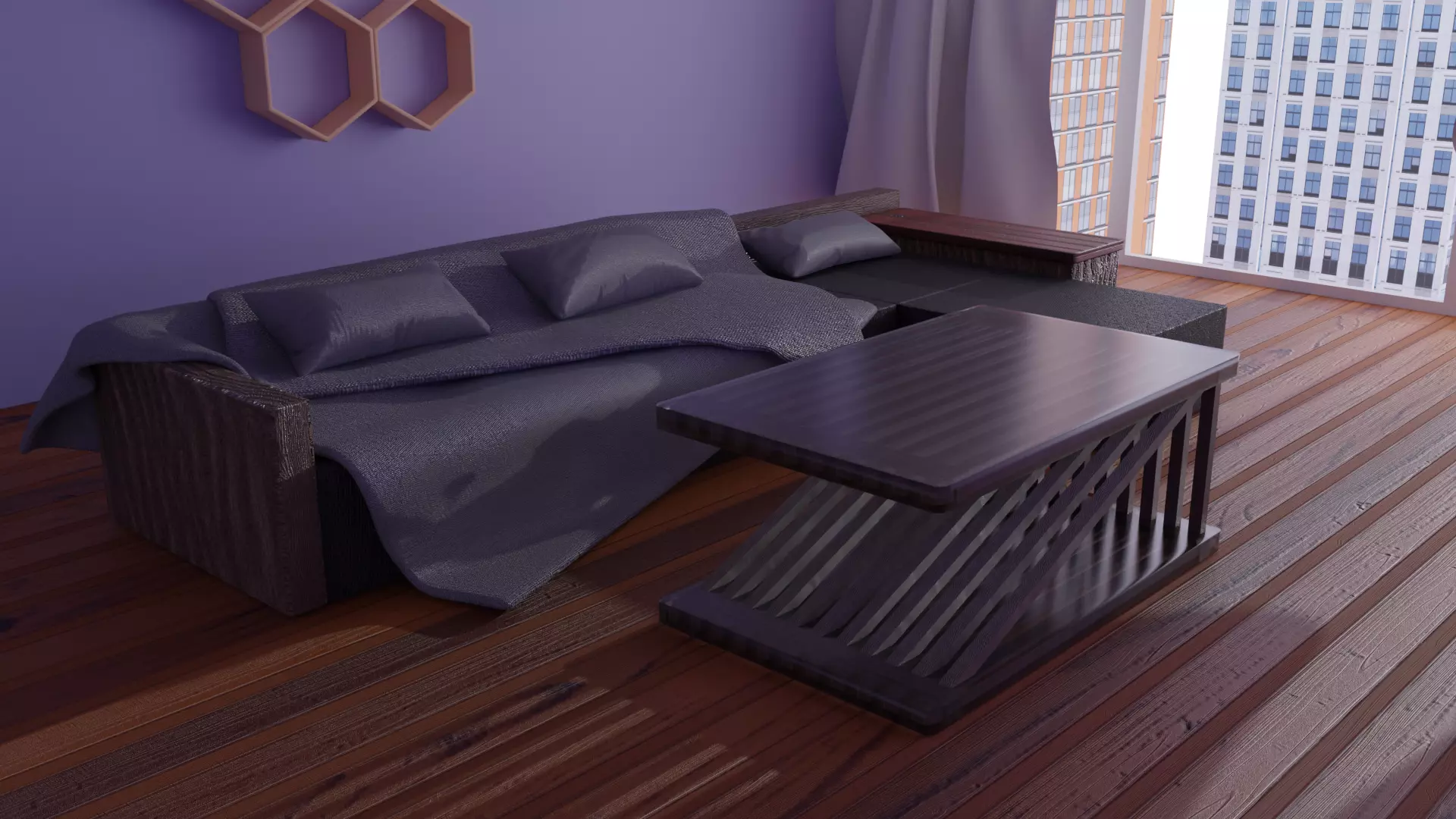 realistic table wood and epoxy loft room loov poly