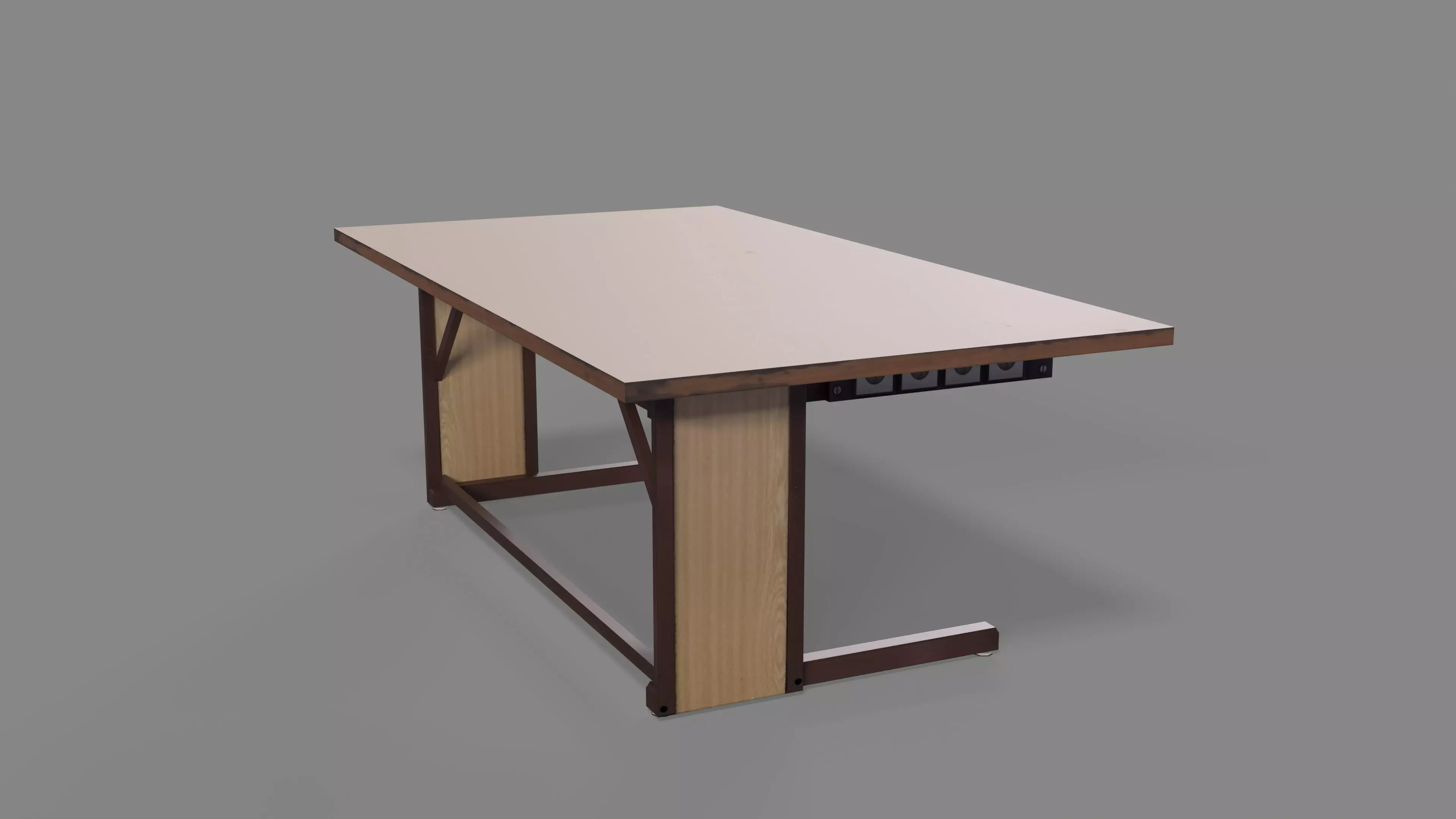 Low-polygonal game-ready PBR asset of realistic old school working table with electrical plugs.