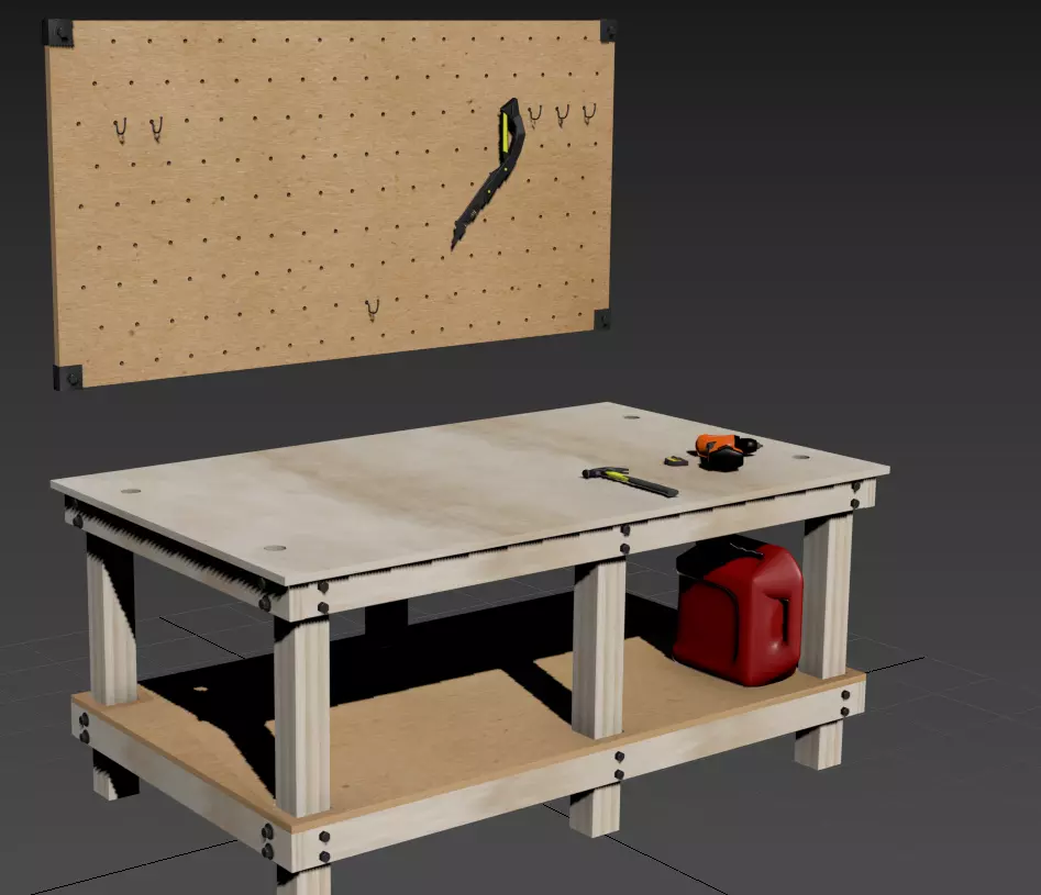 The model has material settings that define how surfaces look (color, shine, transparency, etc.).
