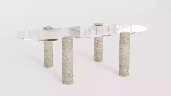 Elegant and raffined Coffee table, made of stone and glass.Perfect to use with corona, but working in different formats.