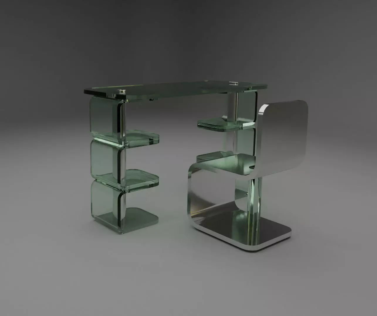 The model has material settings that define how surfaces look (color, shine, transparency, etc.).