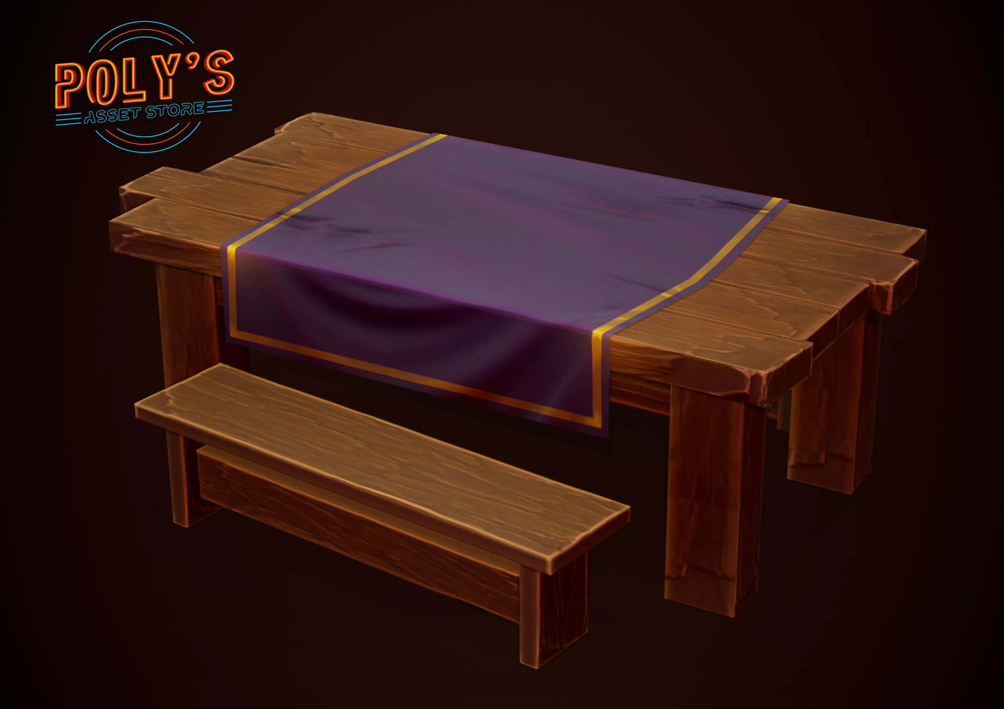 This is a Low Poly Stylized Table, Tablecloth and bench as seen on the preview images.