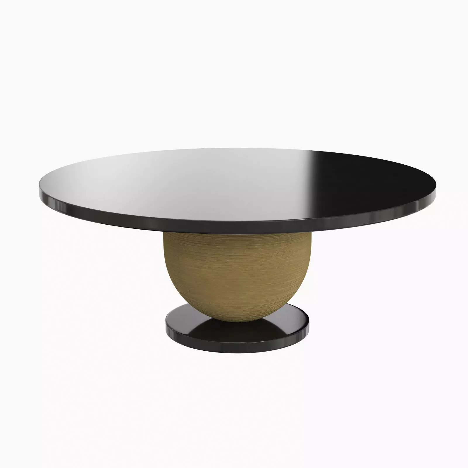 TECHNICAL INFORMATIONHigh glossed lacquered top with gold leaf detailGold coloured metallic semi-sphere base with ridge detail and high glossed black lacquered foot