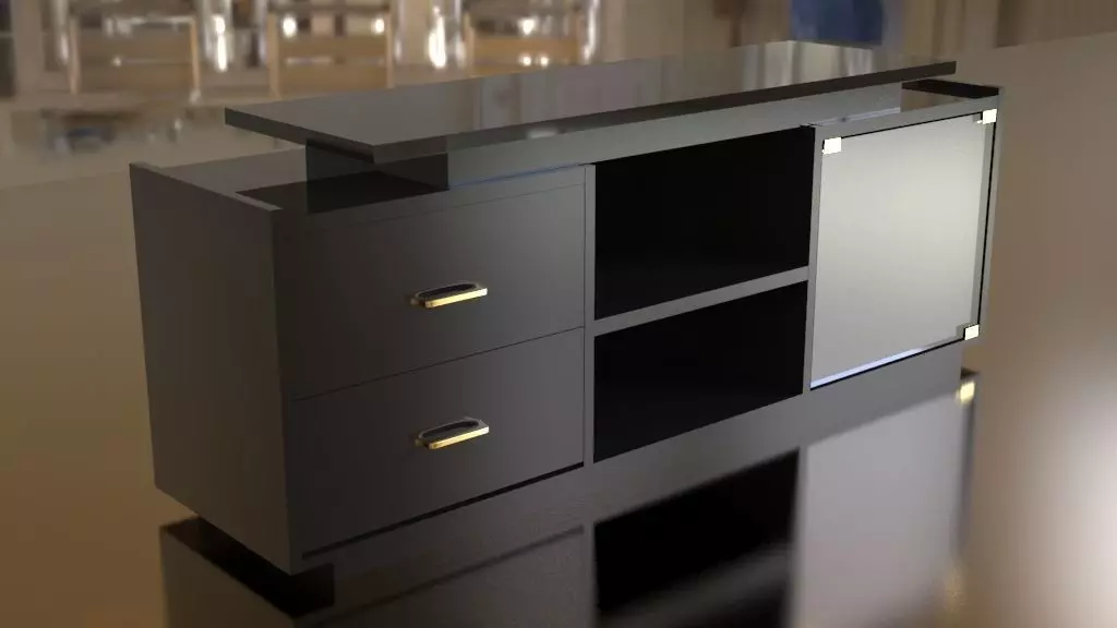 The model has material settings that define how surfaces look (color, shine, transparency, etc.).