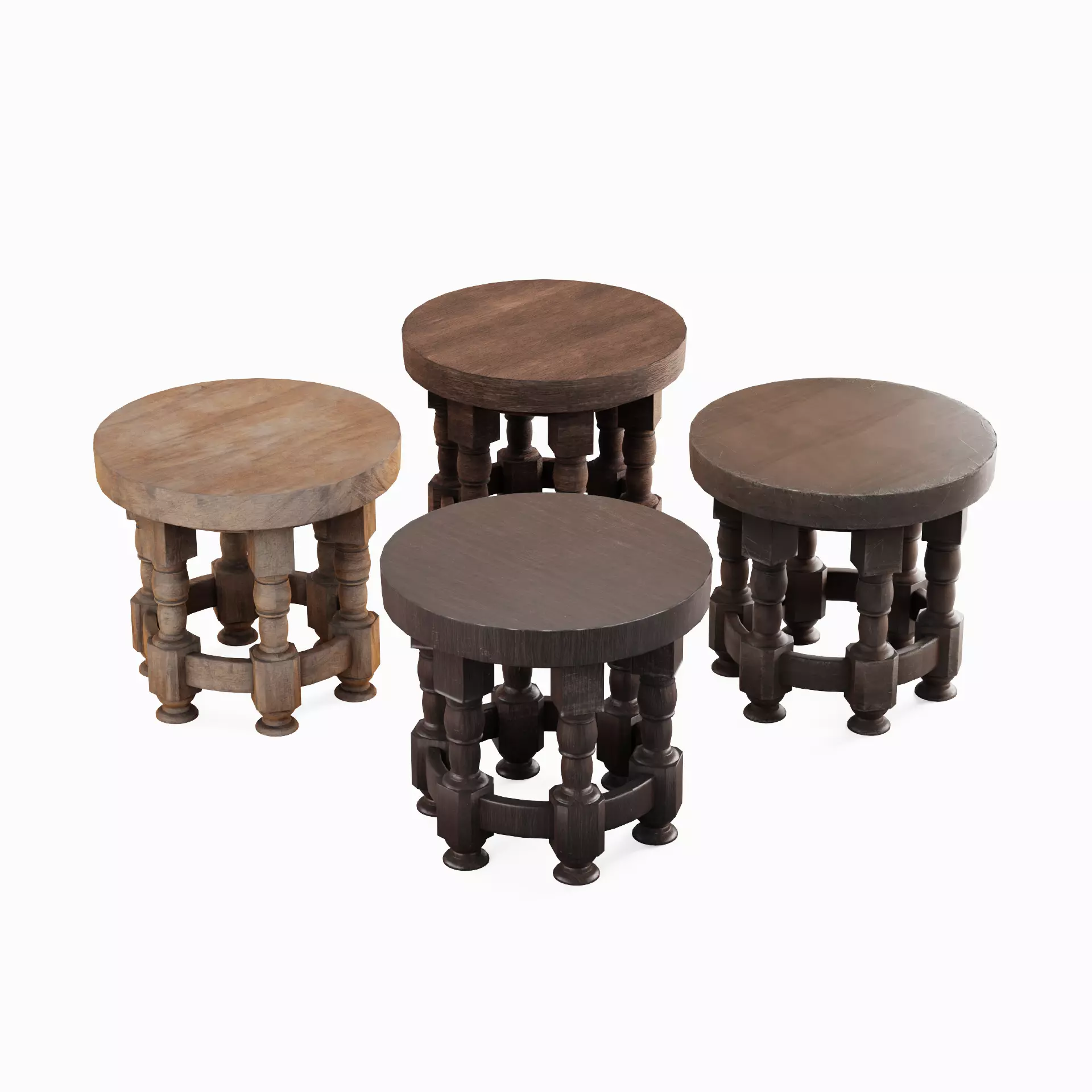 Wooden Round Table Set ( Collection ) – Mid Poly.