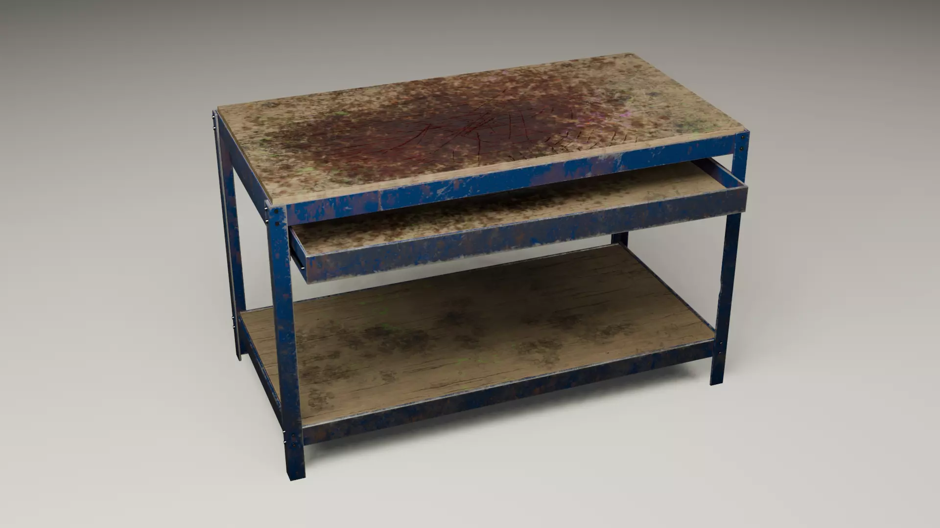 Industrial looking workbench with blood stains.