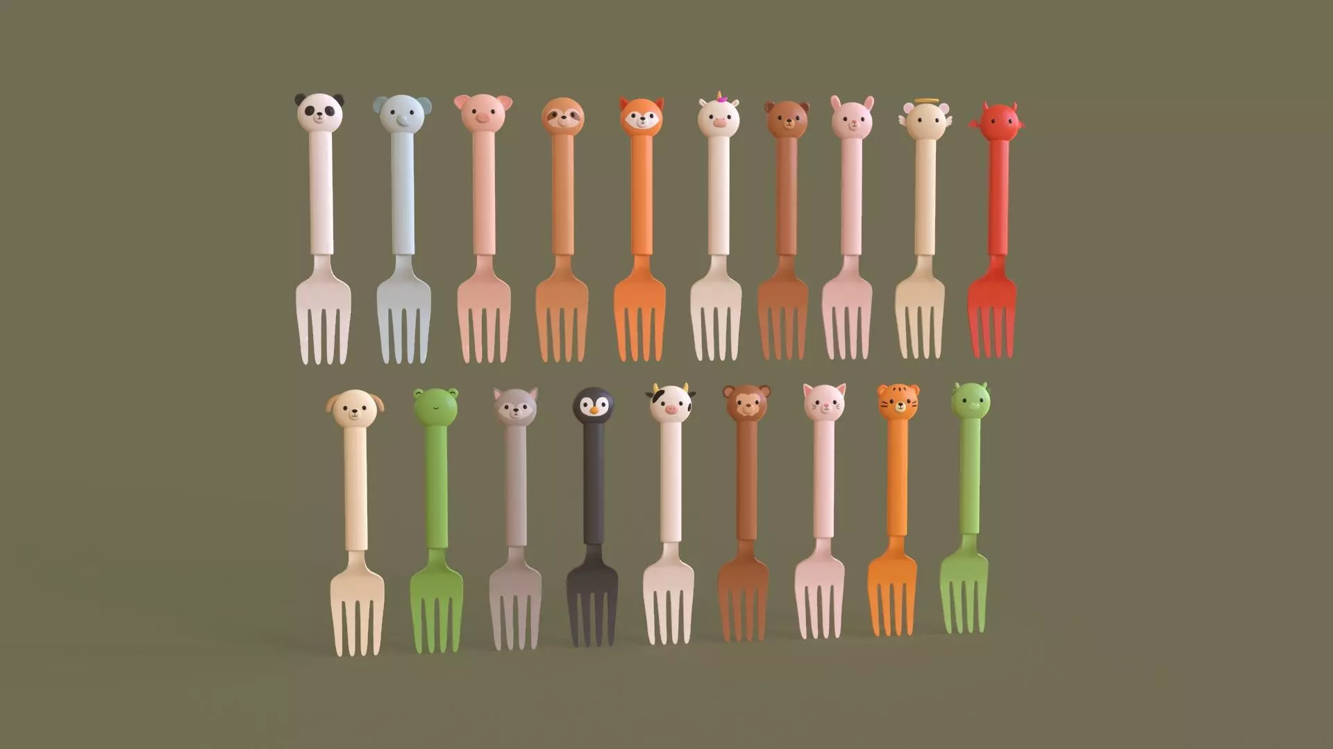Cartoon Forks Plastic Pack 01 3d model low Poly