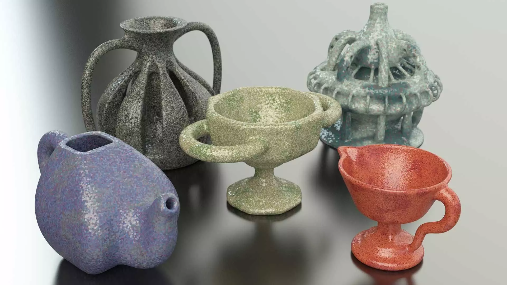 Set of 5 pottery with granite material.The containers were modeled with solidworks, the final scene is rendered in 4d cinema. Use of granite-type nodal materials.all versions are available, C4D, SLDPRT, OBJ, FBX and STL