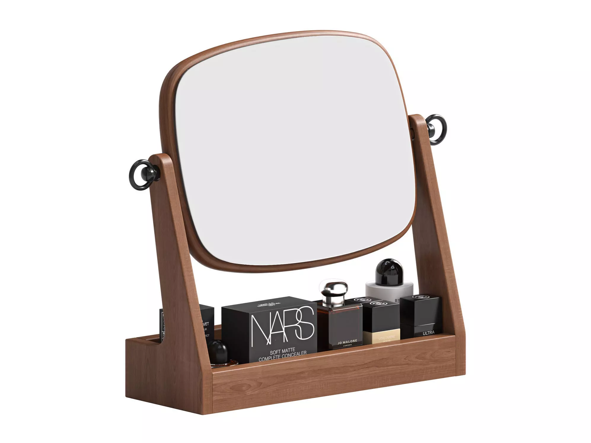 Model Link: https://gvawood.com/products/solid-wood-makeup-mirror-storage-box-integrated-black-walnut-bedroom-dressing-table-mirror-360-degree-rotation