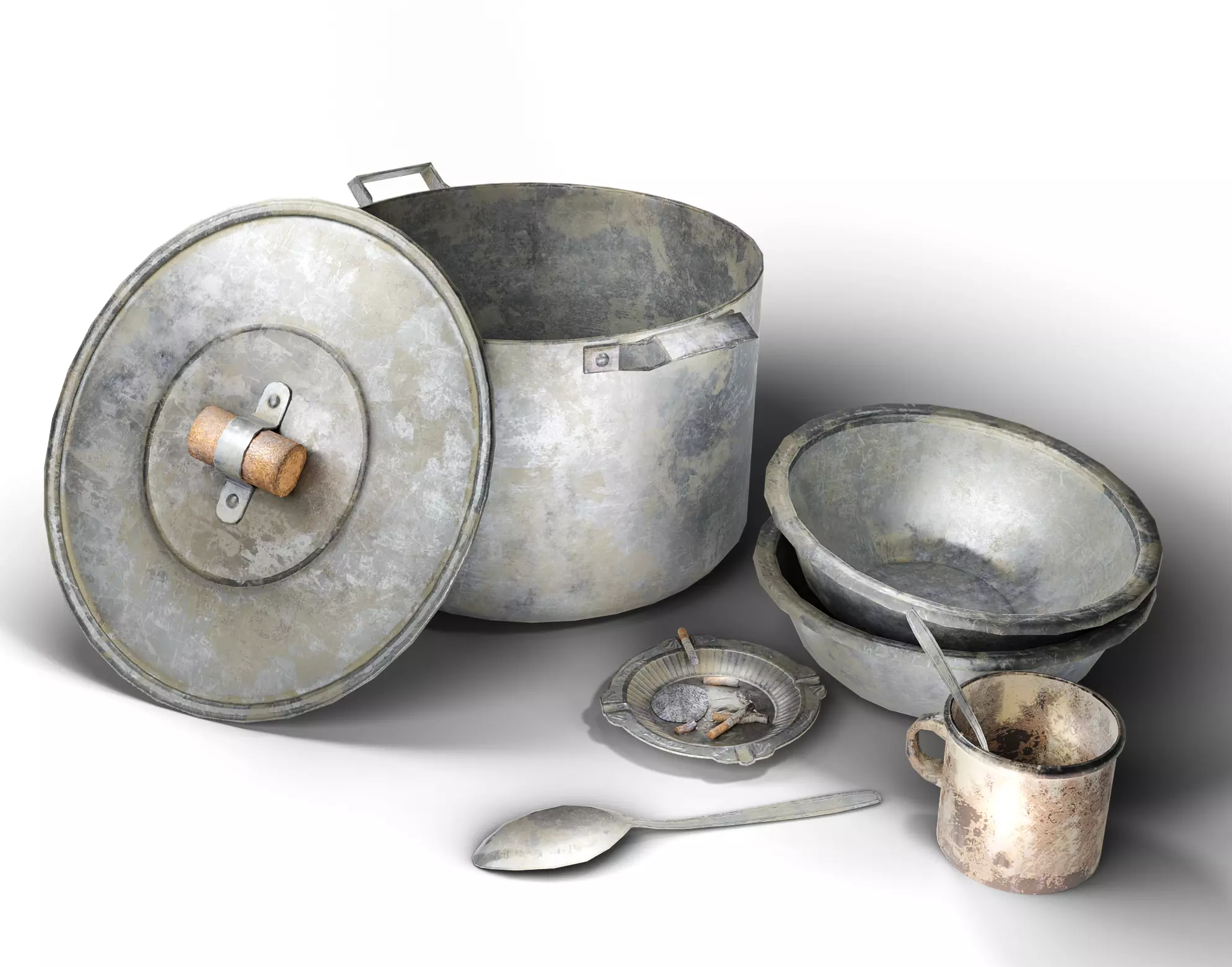 Old metal iron set tableware da1 Low-poly 3D model
