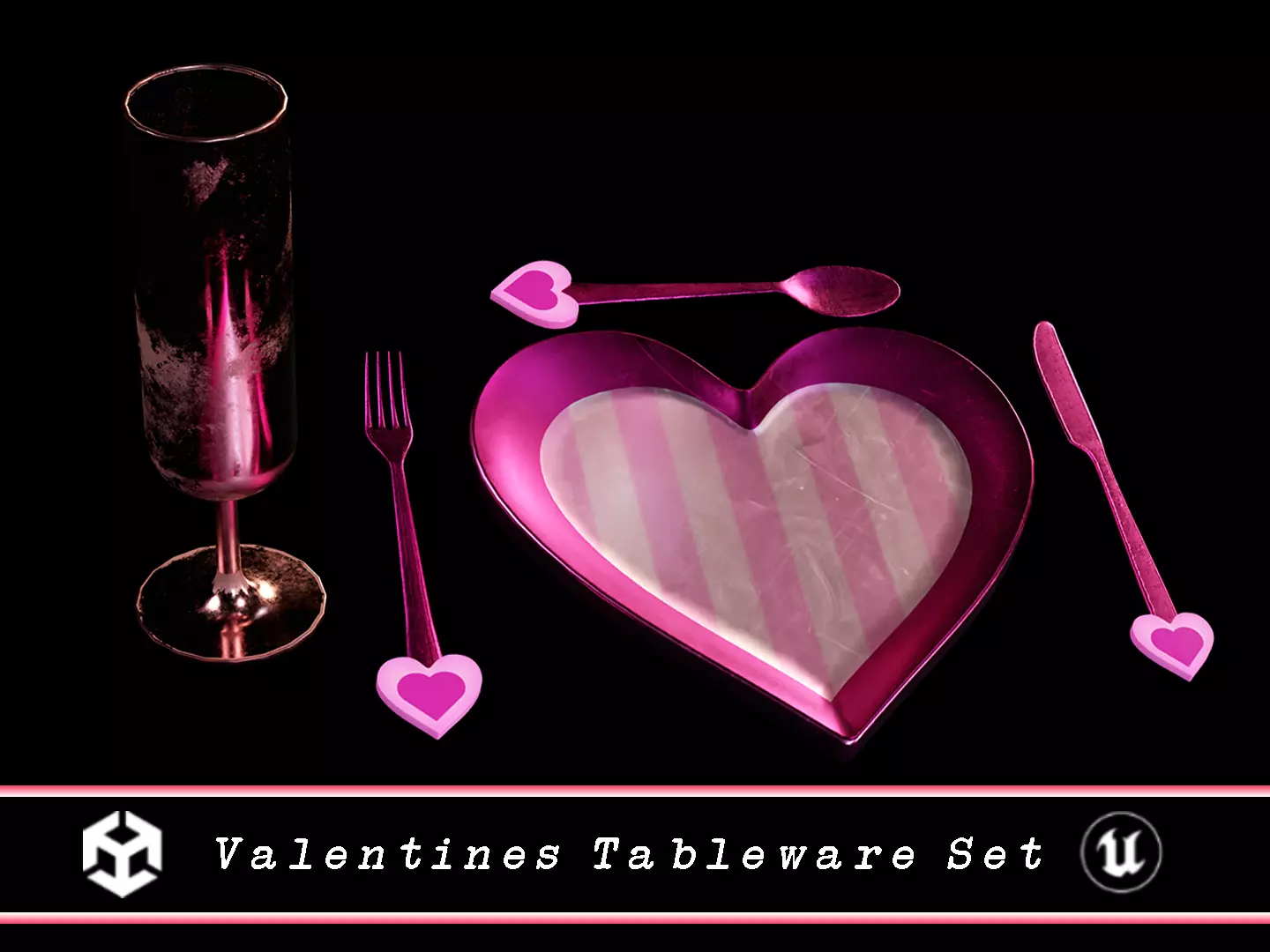 Valentines Tableware Set 3D Model. This model contains the Valentines Tableware Set itself