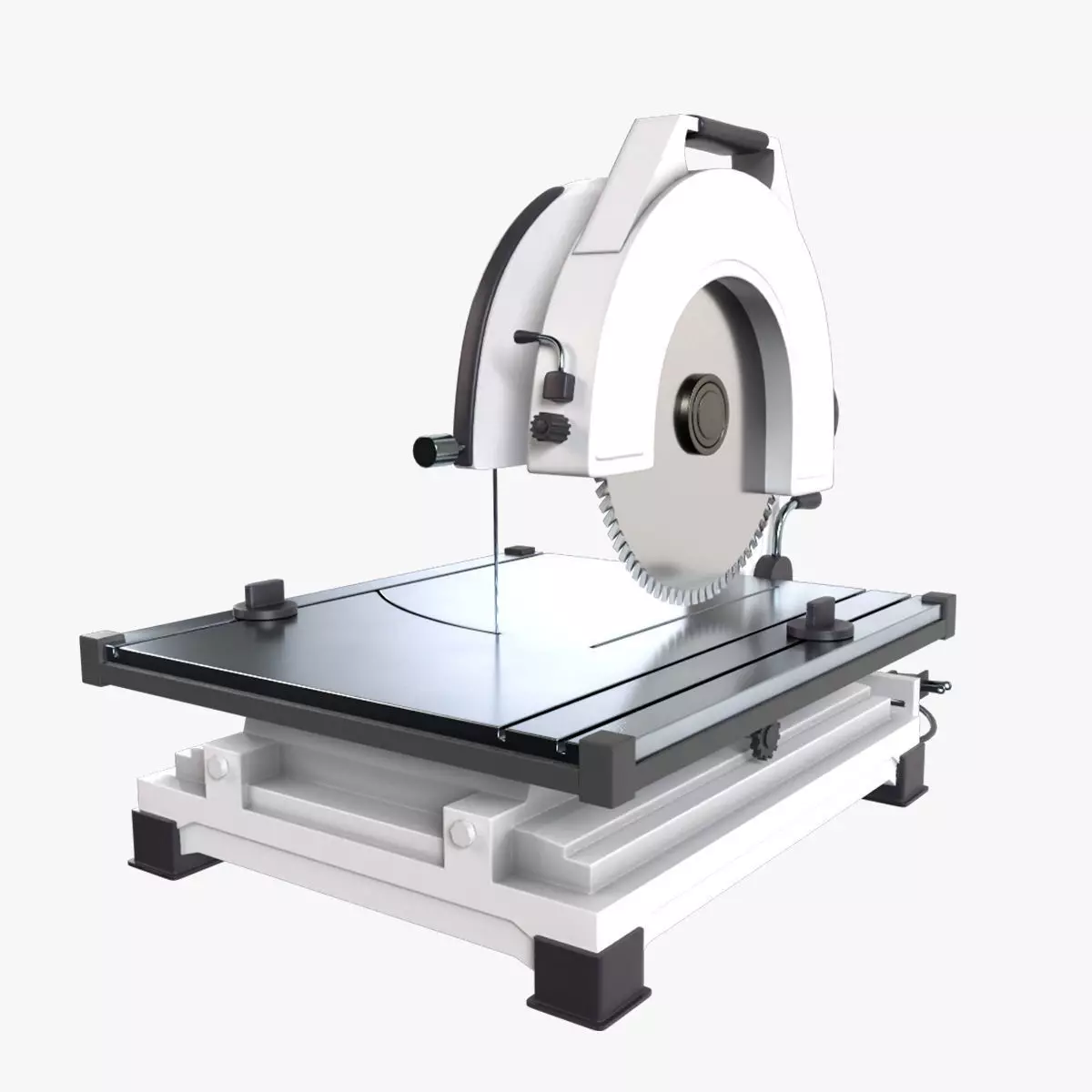 A high-performance band saw with a glossy white finish and chrome details, offering versatility and efficiency for professional carpenters and builders in today's construction industry.