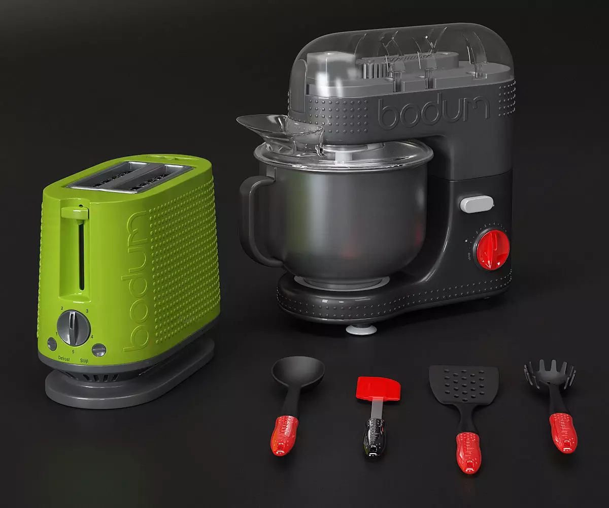 The model has material settings that define how surfaces look (color, shine, transparency, etc.).