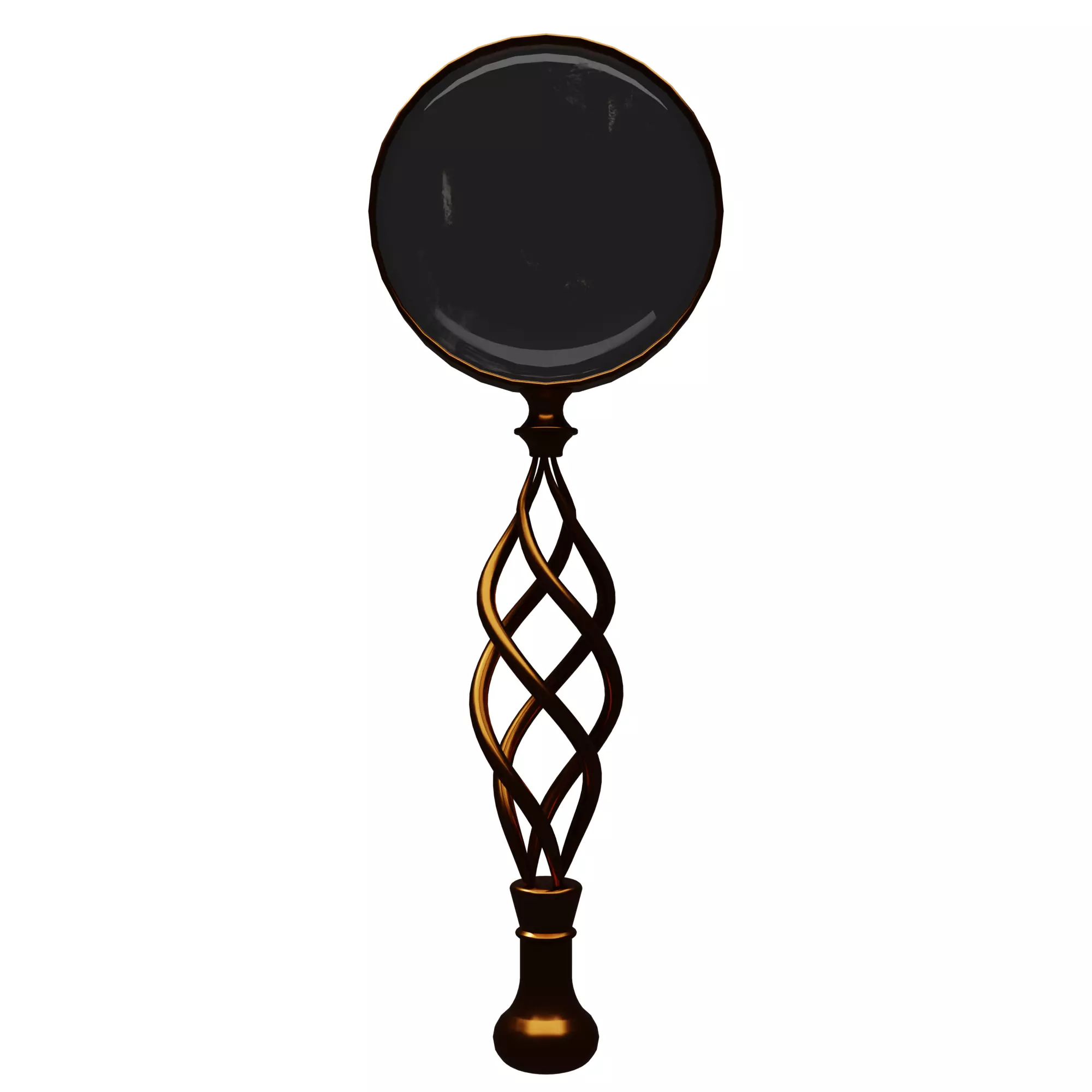 Stylized Antique Design: Unique twisted handle with metallic finish and realistic glass shader.