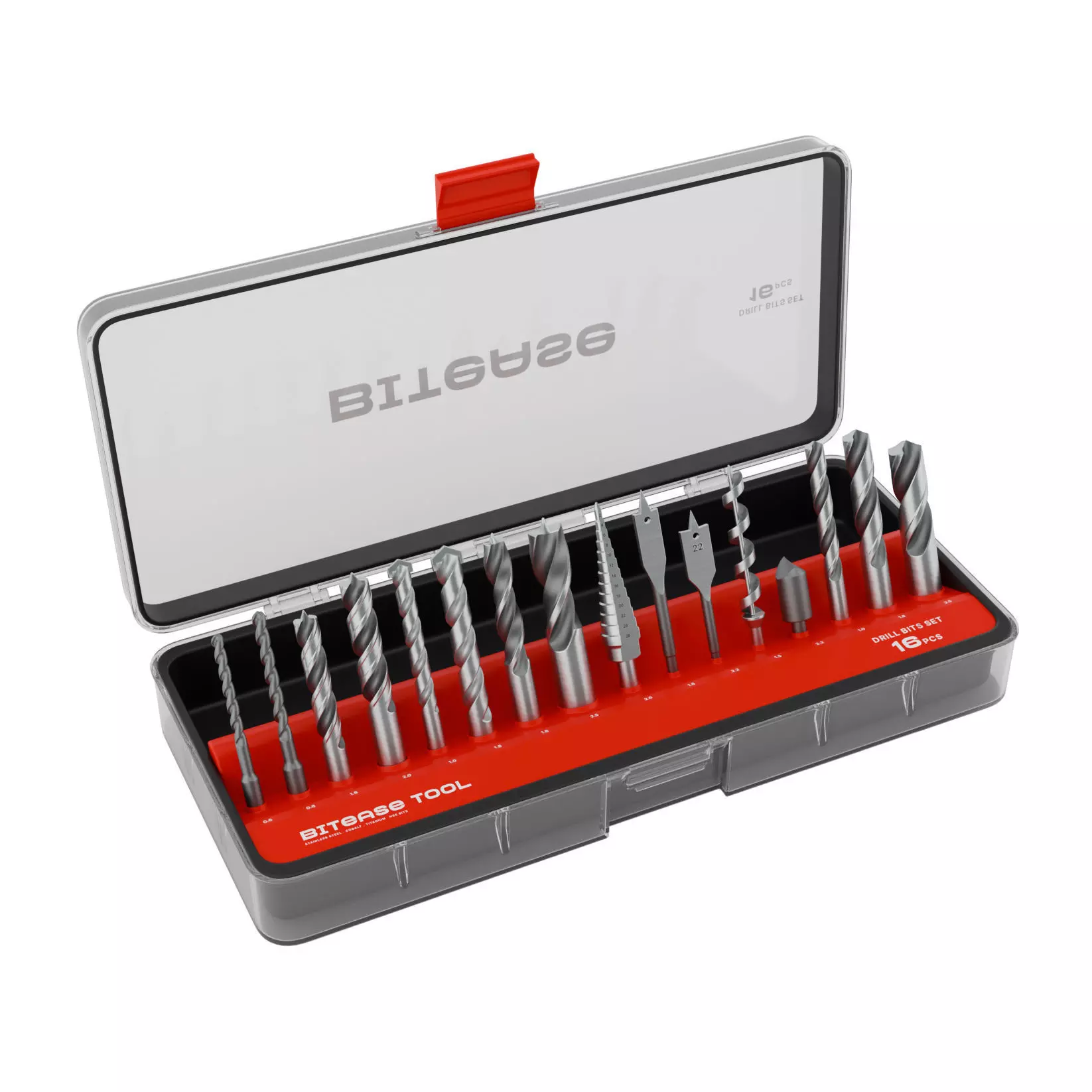 Drill Bits : A versatile drill bit set packaged for various applications, including bits for wood and metal. Secure and compact packaging keeps drill bits organized and protected. Easy-access design for quick bit selection and storage. With transparent packaging allows quick and easy identification of drill bit sizes and types. Durable, lightweight material keeps contents secure and organized.