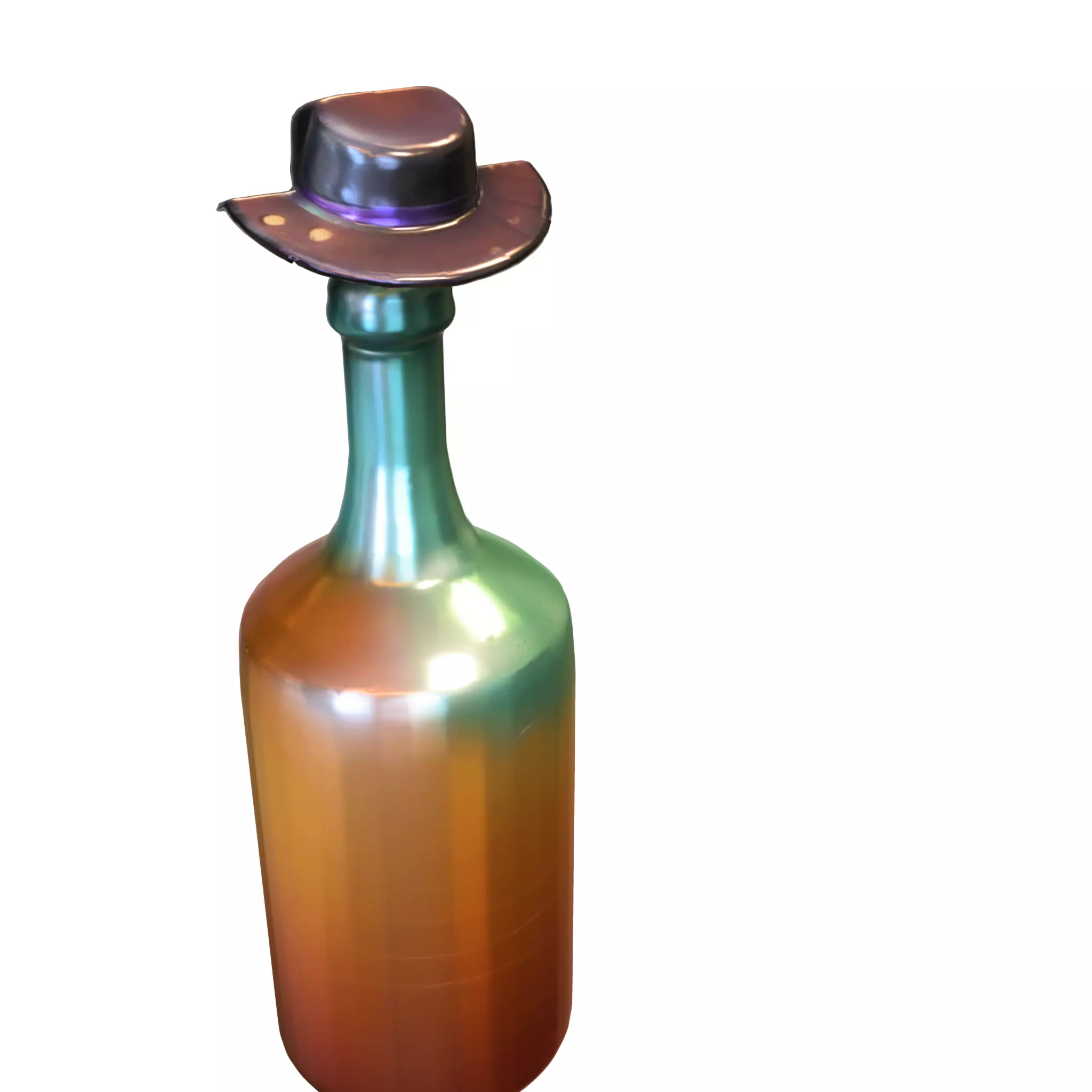 High-quality Enchanted Cowboy Bottle 3D model, perfect for games, virtual worlds, VR, AR, Second Life, Roblox, Unity, Unreal Engine, and 3D printing. This magical flask features a smooth gradient glass body and a cowboy hat-shaped cork, making it ideal for Western, fantasy, and potion-themed settings.