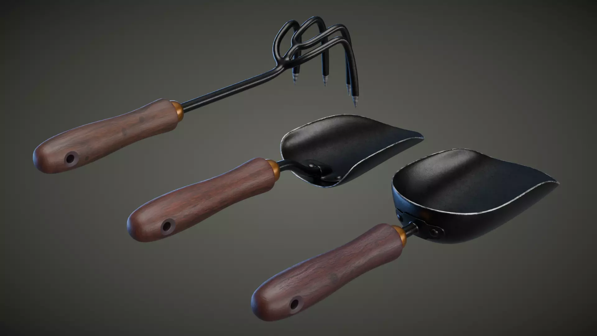 Garden Tools Trowel Cultivator Scoop Low-poly 3D model