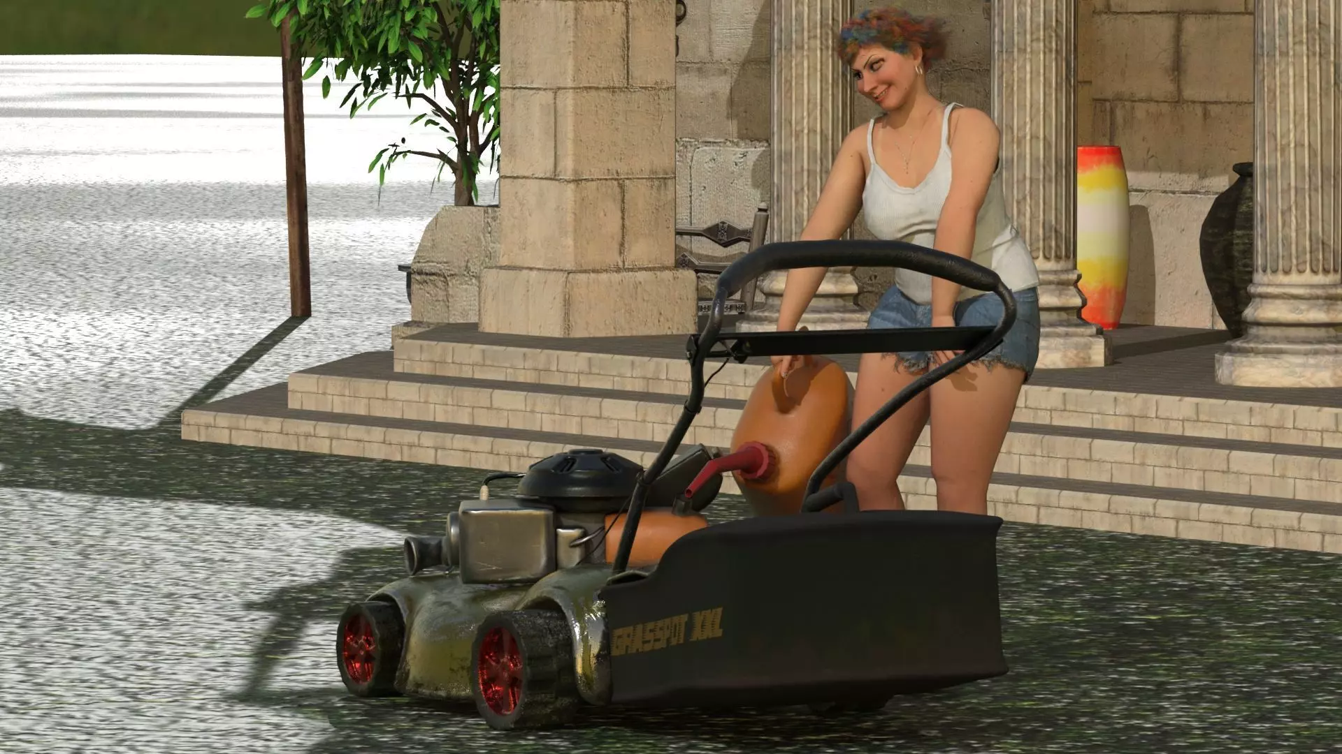 It's noontime, sun is shining and the lawn outside finally dry enough. - Time to get that old gasoline lawnmower out to have some fun, disturbe the neighborhood and get gardenwork done.Of course there is no need to go to the fitness center afterwards since it's one to push (without modern drive propulsion system).