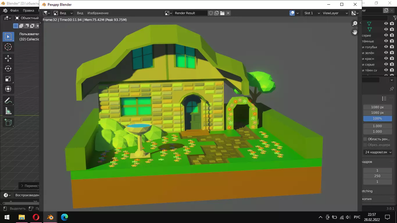 The model has material settings that define how surfaces look (color, shine, transparency, etc.).