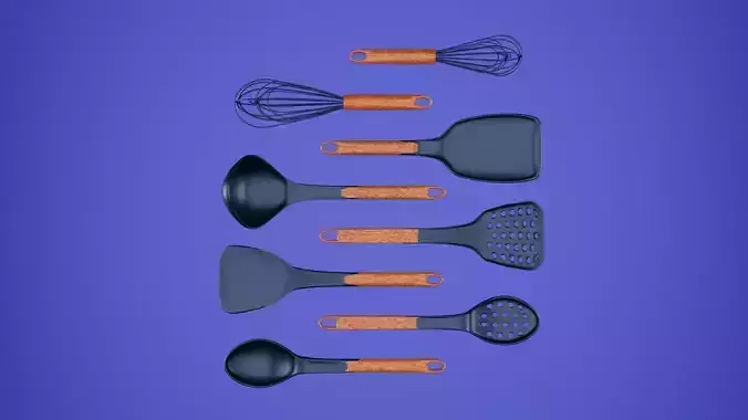 3D model sets of silicone tool equipments you find in the kitchen. It can be used for tools or as decorations.