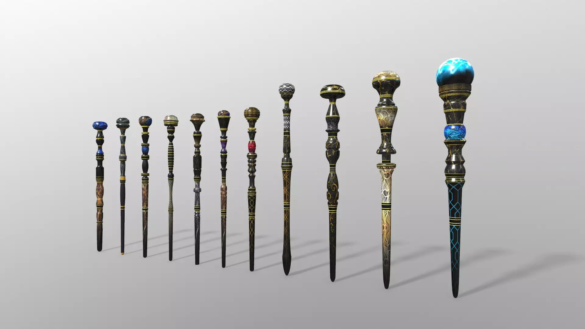 Enhance your 3D project with this high-quality collection of 11 walking stick canes, featuring realistic 4K textures. Perfect for game developers, animators, or digital artists, this set provides a variety of detailed walking stick models that add a touch of sophistication and authenticity to any project. Each walking stick is meticulously crafted with attention to detail, offering exceptional textures that bring out the fine wood grain, polished finishes, and elegant design.