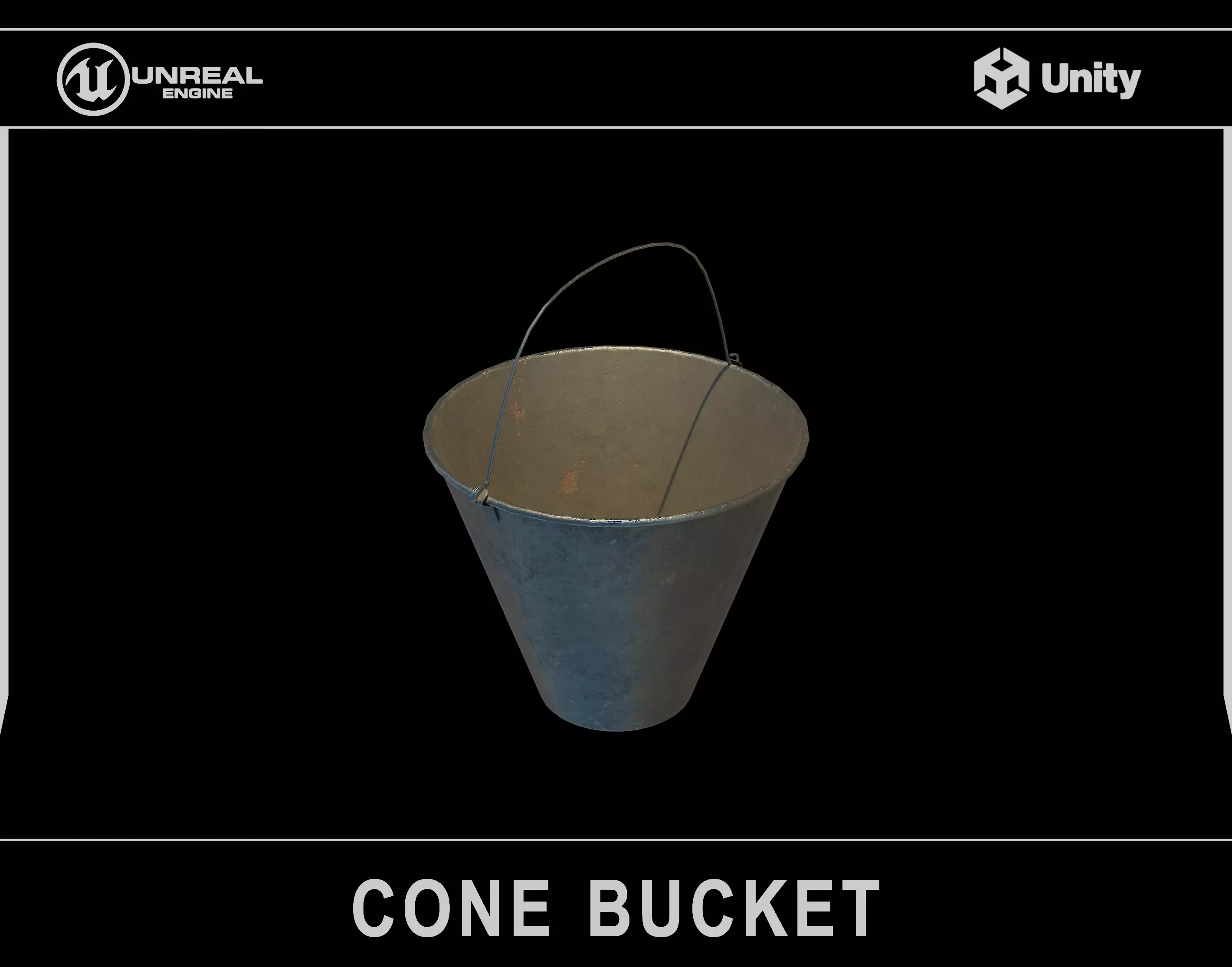3D asset of realistic cone shape metallic bucket. It comes with a variety of file formats and texture options to suit your needs. Asset also scaled to real world size for accuracy and convenience. Whether you are working with Unity, Unreal, Blender, or any other 3D software, you can easily import and use this asset in your scenes.