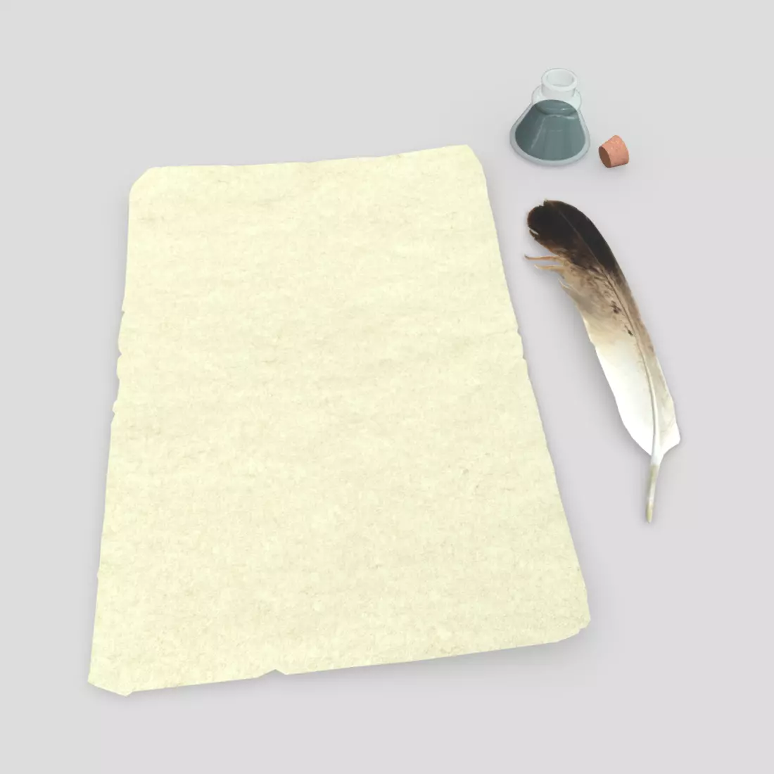 Quill Inkwell Parchment Low-poly 3D model