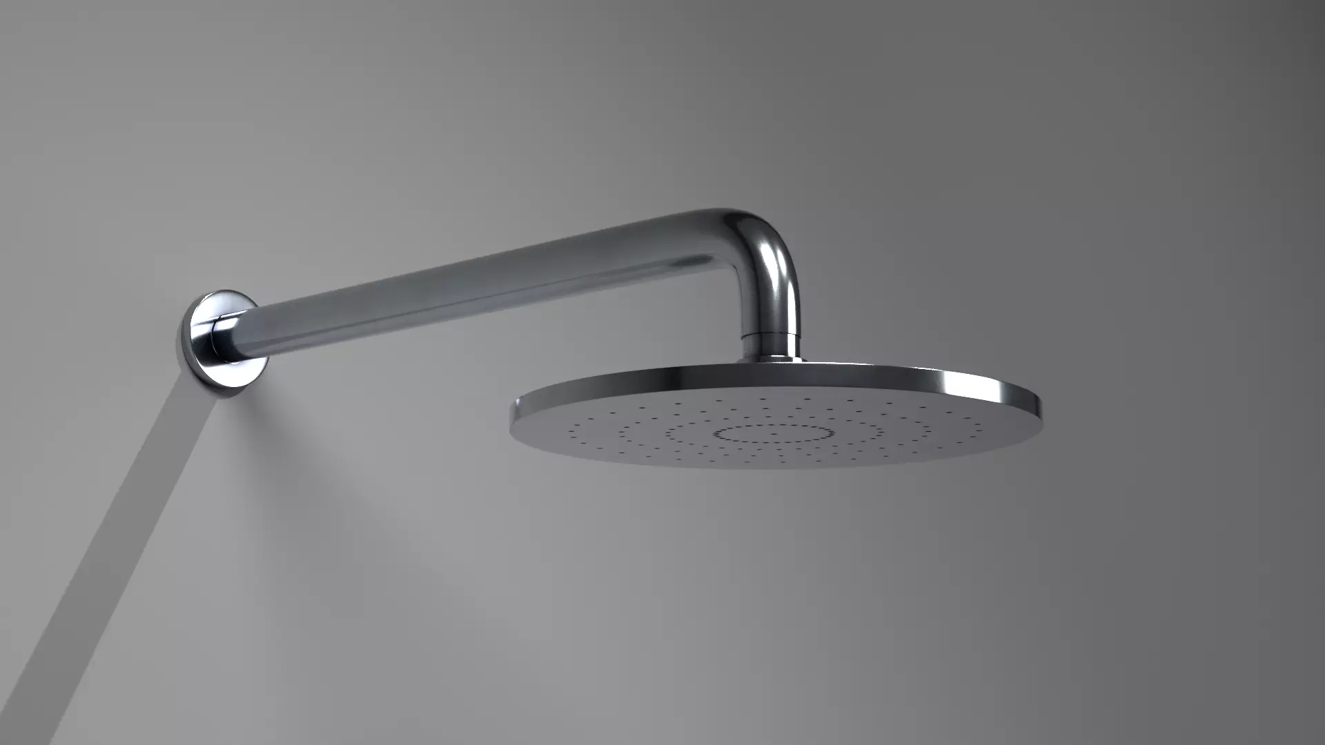 This modern, rainfall-style round shower head elevates the character and class of any exterior or interior shower