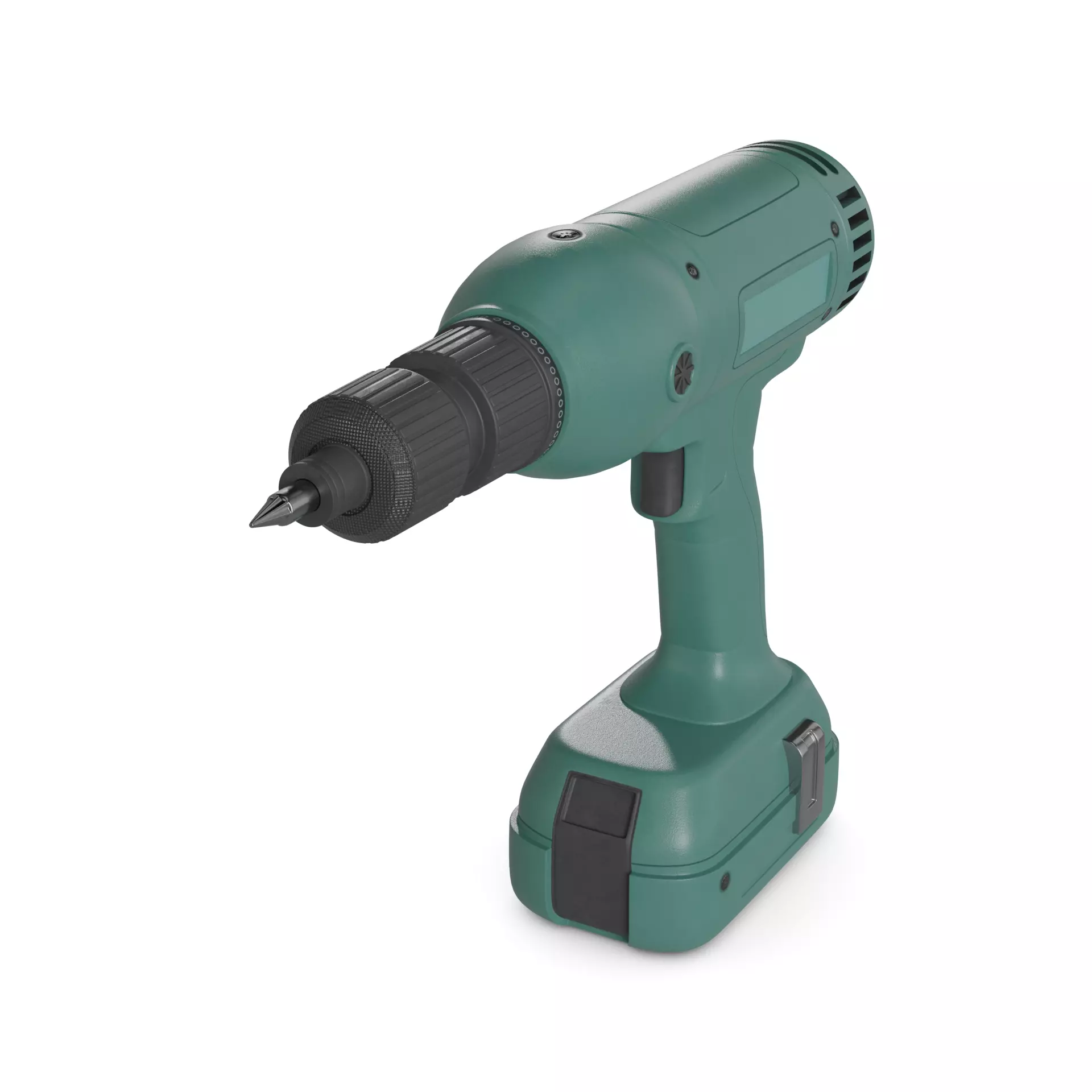 A lightweight screw gun with a soft green exterior, featuring a quick-change chuck and variable speed trigger, perfect for fastening screws with ease in the current era.