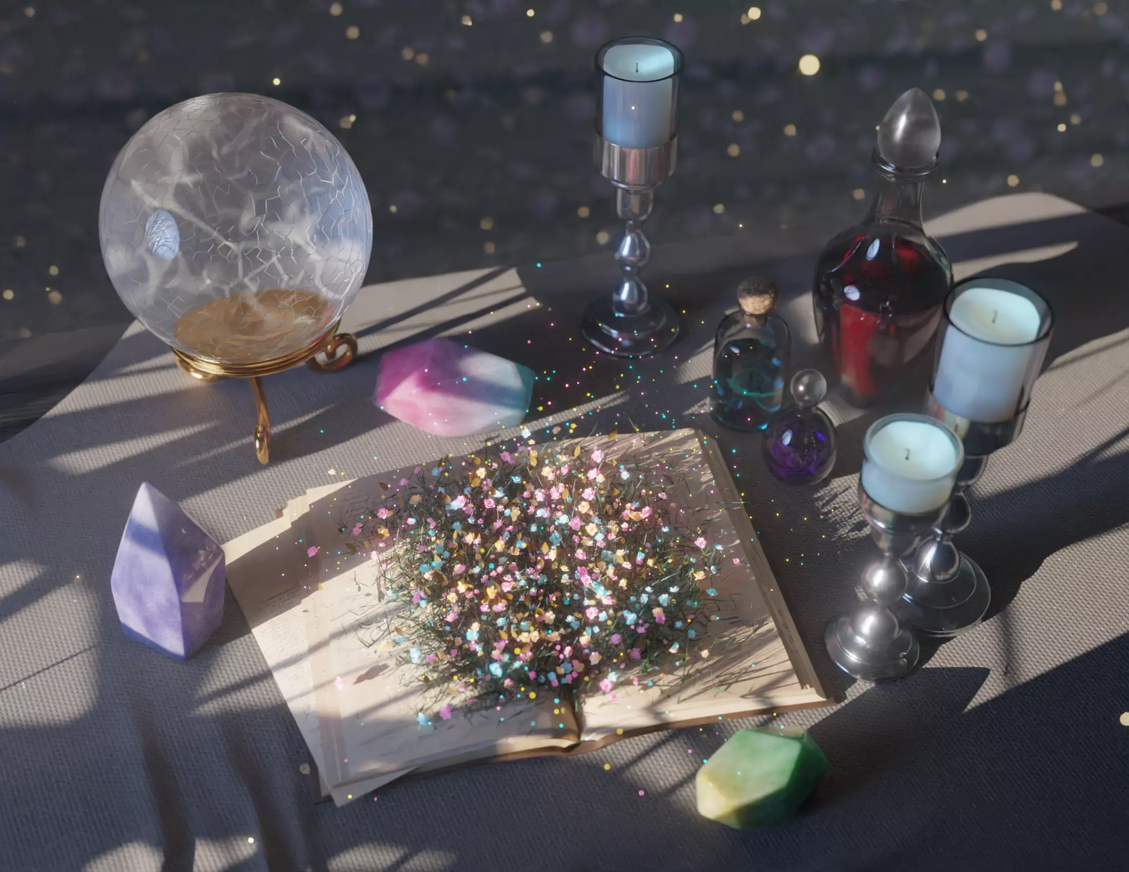 6 crystals with 6 different materials, I used it in magic-mood scenes (like in a preview).