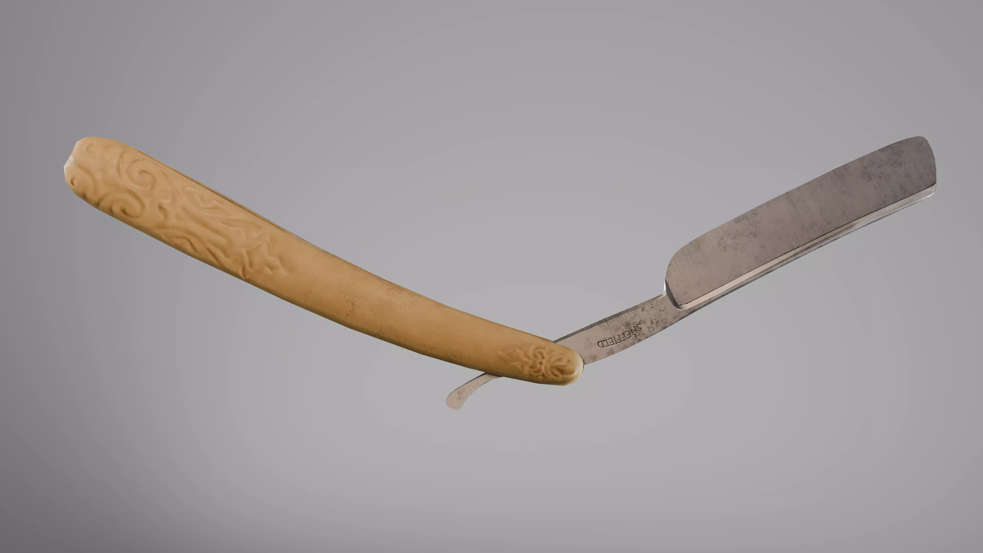 Sheffield straight razor with a decorated ivory-colored handle, with the word “Sheffield” engraved on the blade. I found it somewhere on the internet.