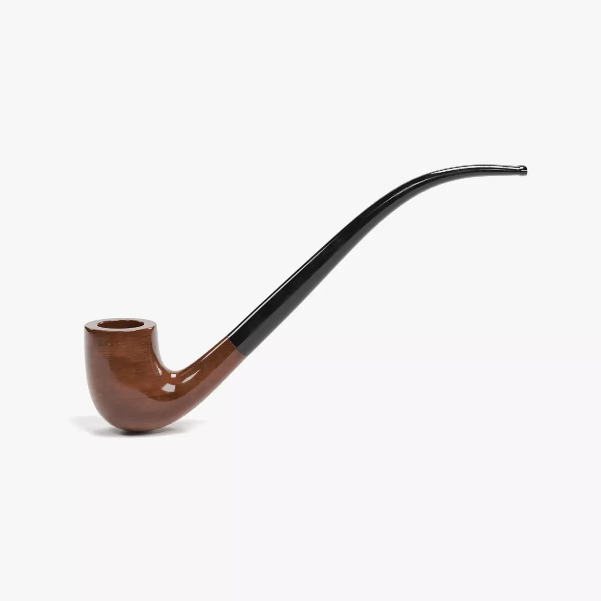 A detailed 3D model of a classic churchwarden smoking pipe, defined by its long, elegant bent stem and compact bowl. The apple/prince-style bowl is crafted in dark polished wood, paired with a slender black stem that gives the pipe its distinctive form. This pipe type adds strong visual character while remaining grounded and believable.
