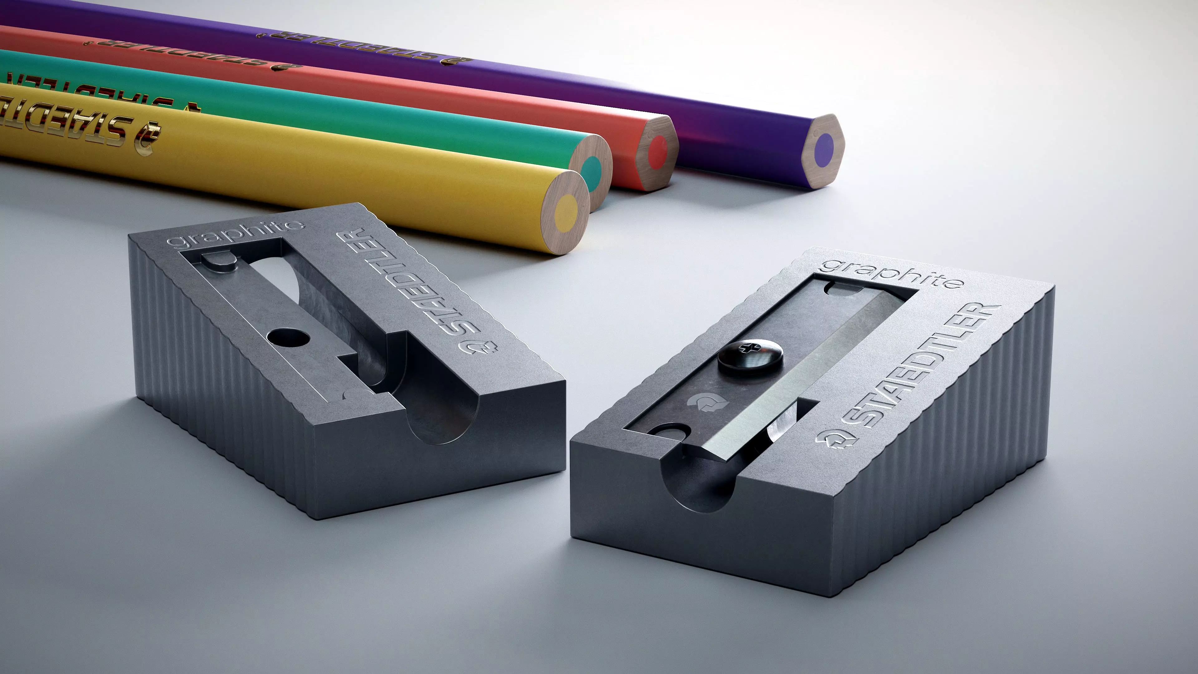 Staedtler Pencil Sharpener and Colouring Pencils Low-poly 3D model