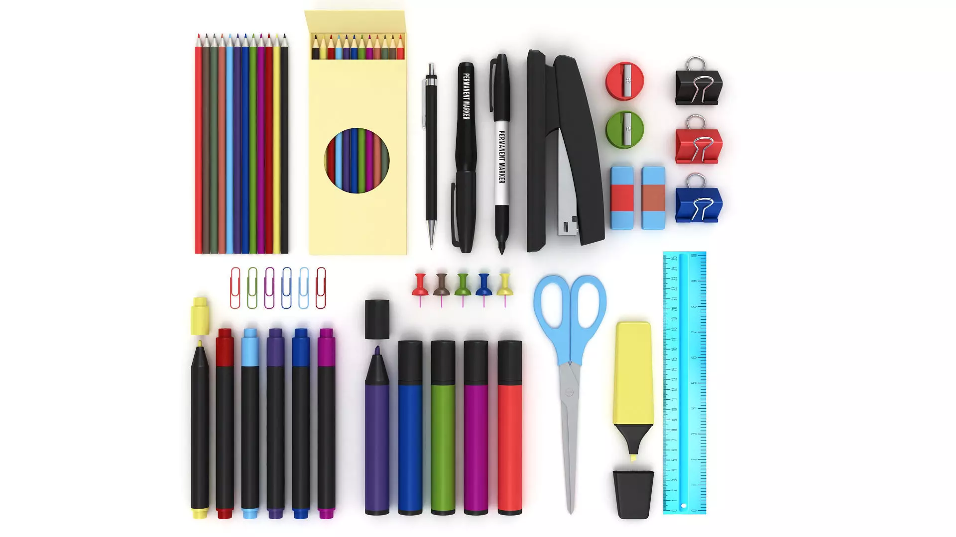 This ''Stationary Collection' is a high quality, photo real model that will enhance detail and realism to any of your rendering projects, detailed design that allows for close-up renders, and was originally modeled in 3DS MAX 2013 and rendered with V-Ray 3.6